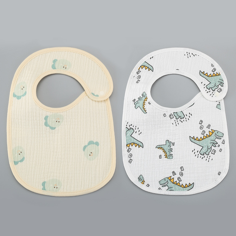 Style24. Green dinosaur Dinosaur Baby 2 pack gauze waterproof bib,