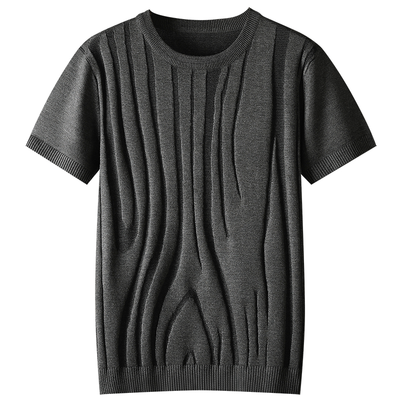 Thin Knit Shirt With Round Neck And Short Sleeves
