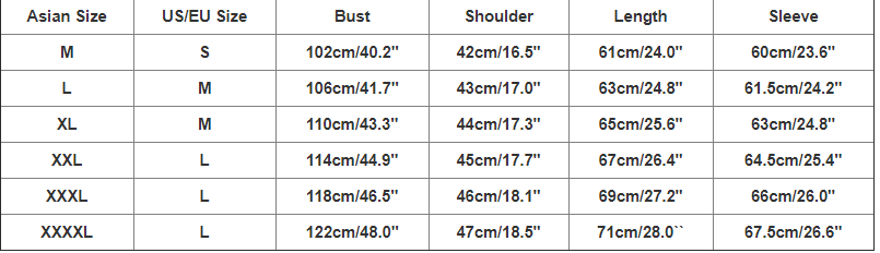 1. Asian sizes are 1 to 2 sizes smaller than European and American people. Choose the larger size if your size between two sizes. Please allow 2-3cm differences due to manual measurement.