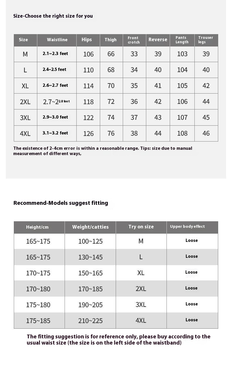 Size: M for kg,L for kg,XL for kg,2XL for kg,3XL for kg,4XL for 105.00kg