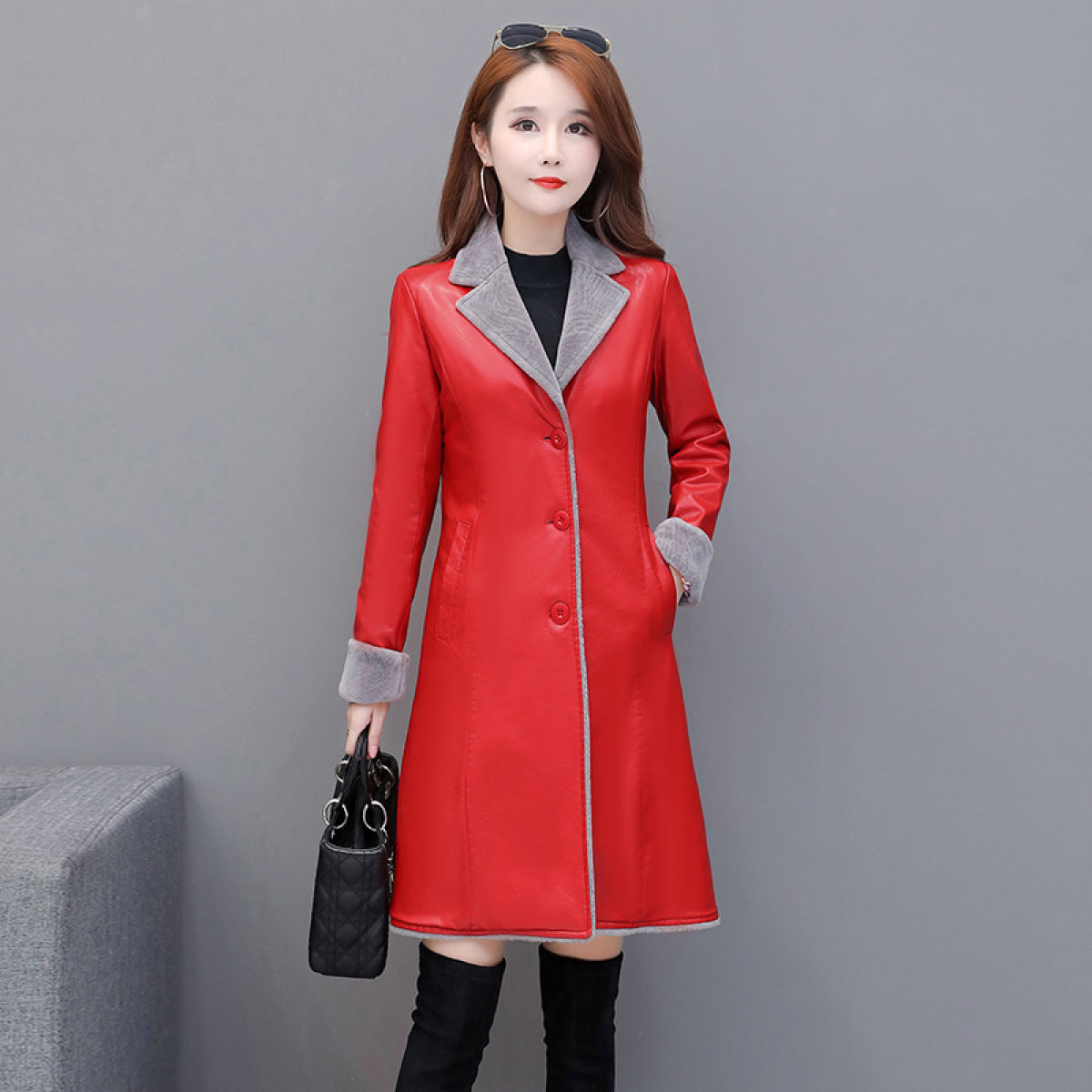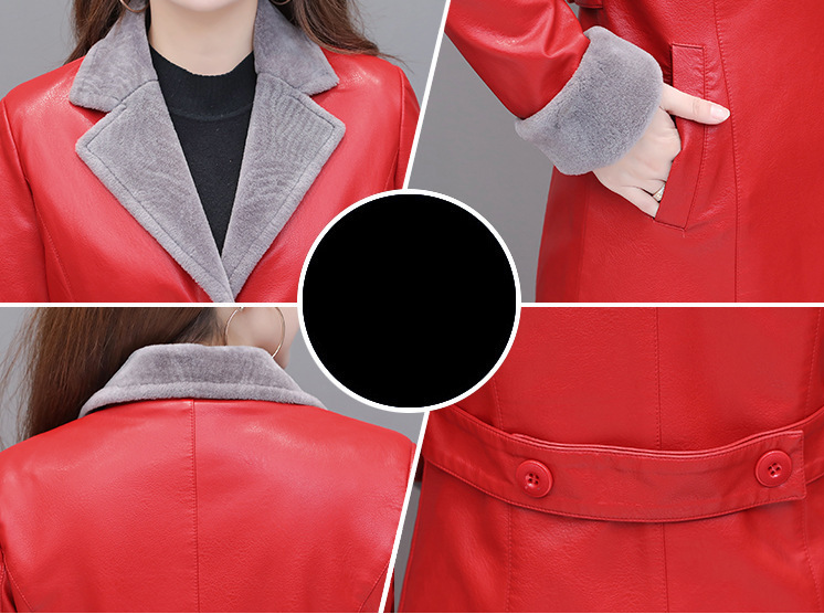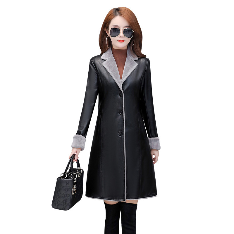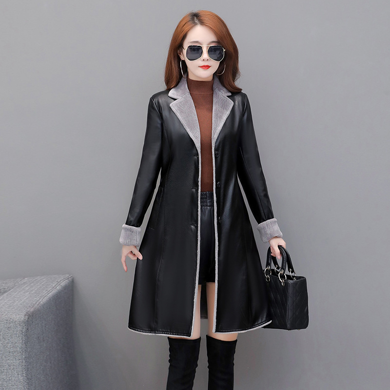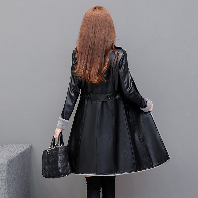 Thin Plus Velvet Thick Pu Leather Trench Coat