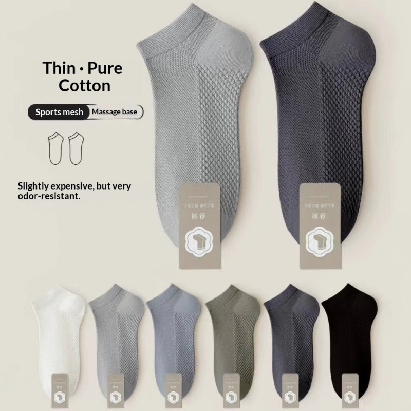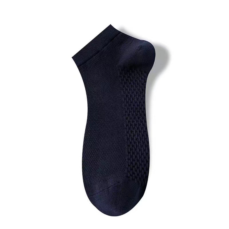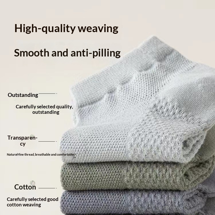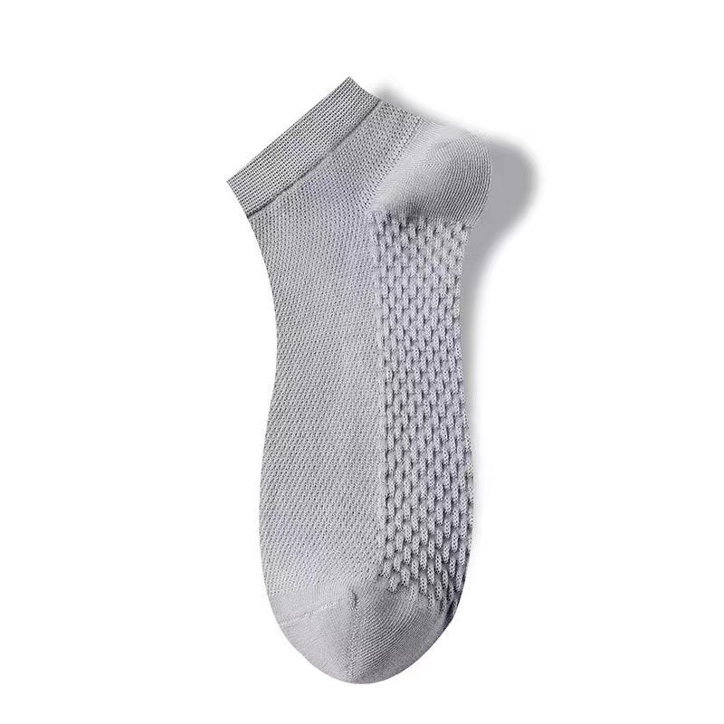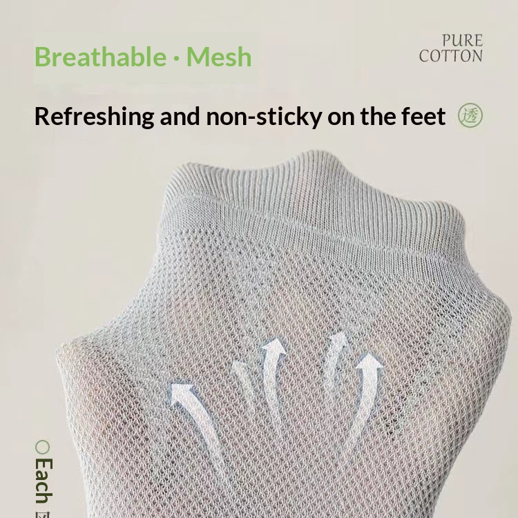 Colors: White mesh-bottom socks, black mesh-bottom socks, light green mesh-bottom socks, navy blue mesh-bottom socks, dark gray mesh-bottom socks, light gray mesh-bottom socks, khaki mesh-bottom socks
