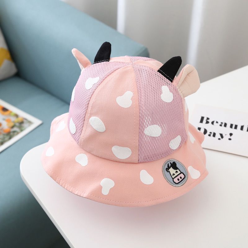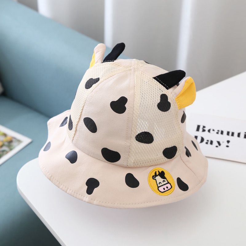 Style 13 beige and white - cow black dot mesh hat with mask,