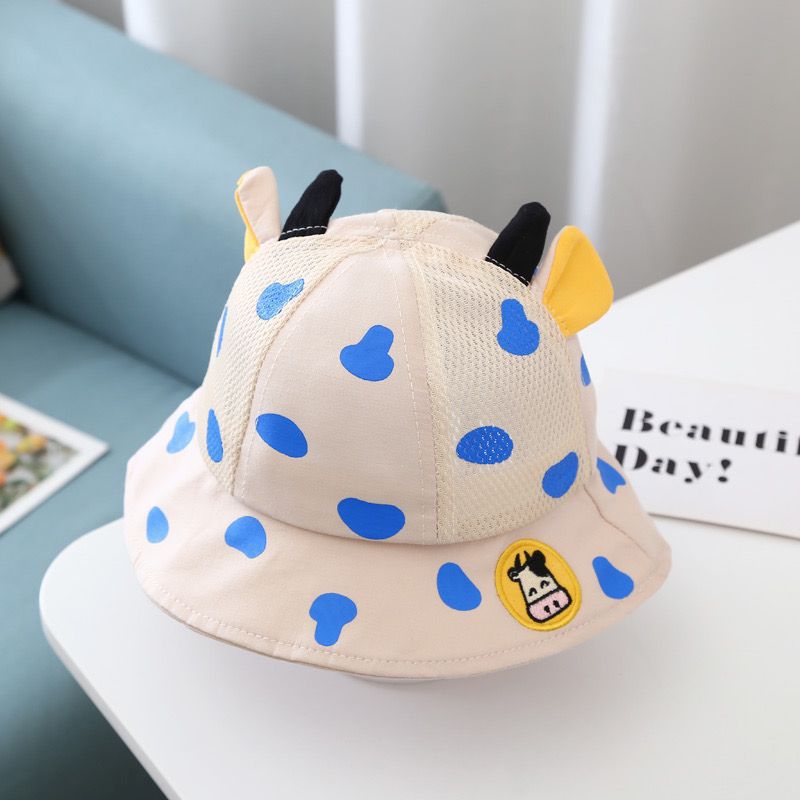 Style 14 beige and white - cow blue dot mesh hat with mask,