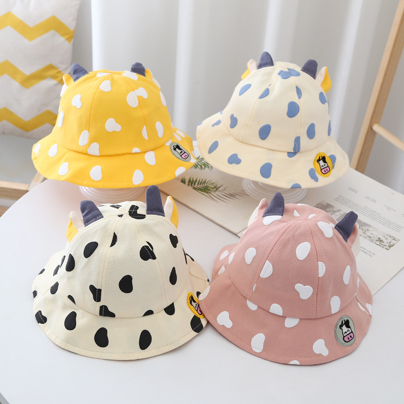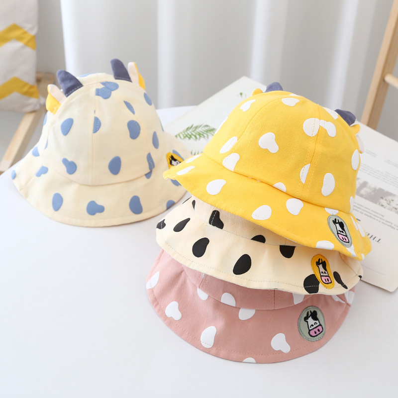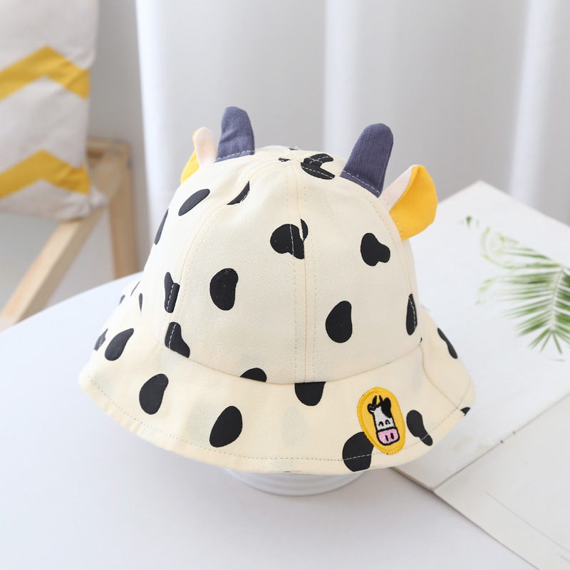 Style 2 yellow - cow white dots cloth cap plus visor,