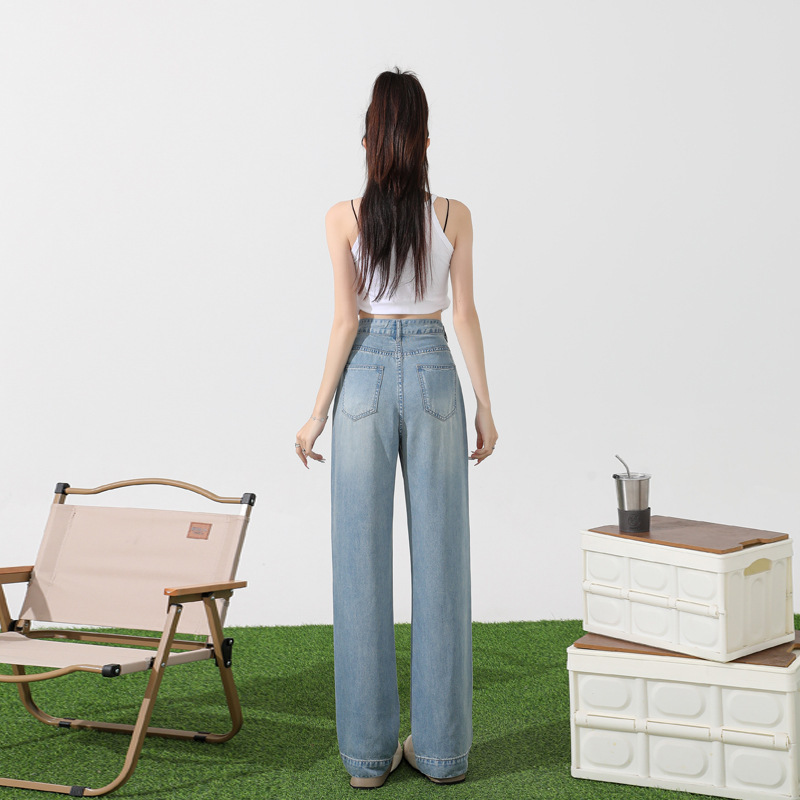 Thin Soft Jeans Women's Summer Thin Straight High Waist