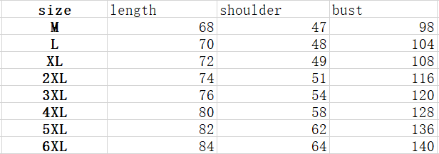 Size: M, L, XL, XXL, XXXL, XXXXL, 5XL, 6XL