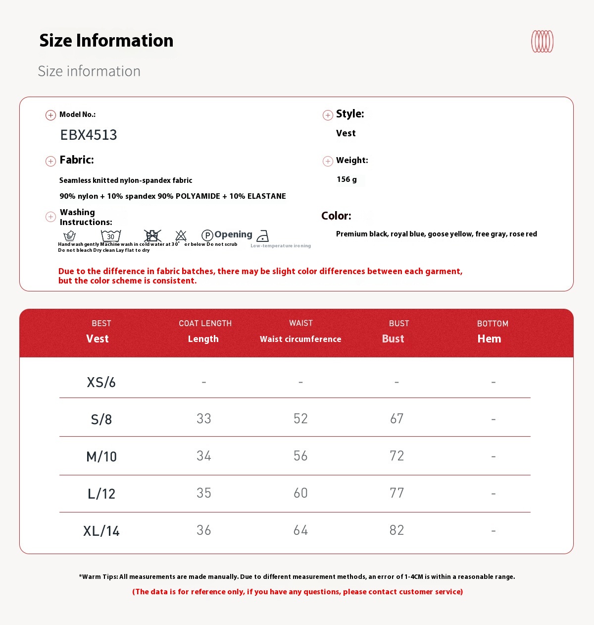 Material composition: 90% nylon, 10% spandex