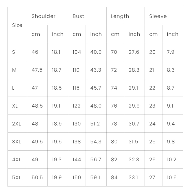 Size:S M L XL 2XL 3XL 4XL 5XL