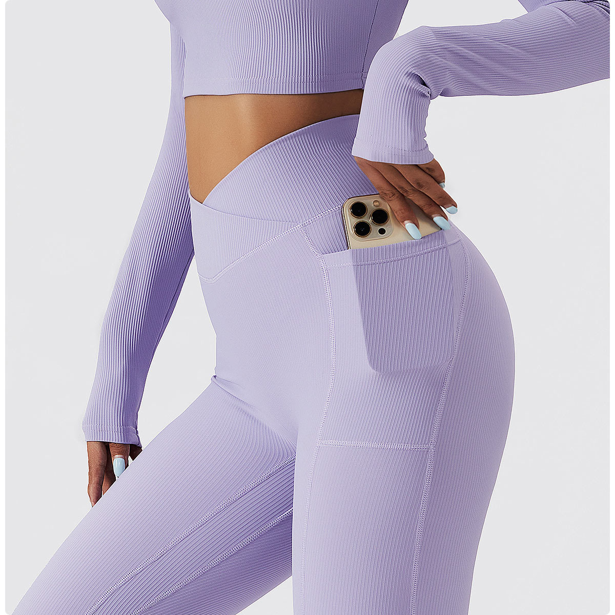 Thread Pocket High Waist Fitness Skinny Peach Hip Lifting Running Workout Pants