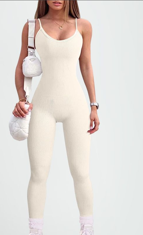 Threaded Sling Round Neck Long Pants Jumpsuit