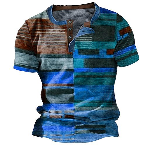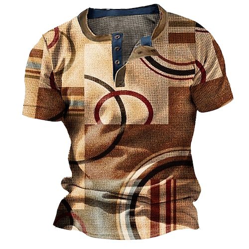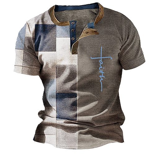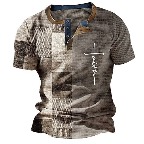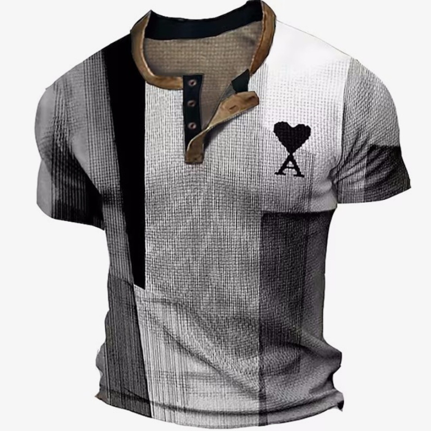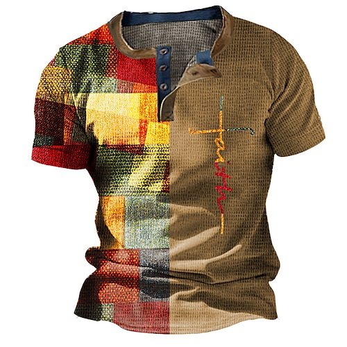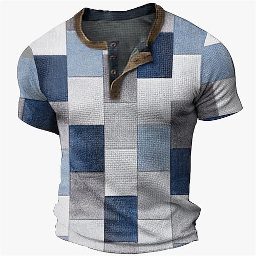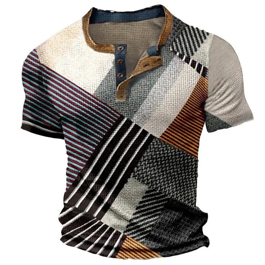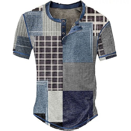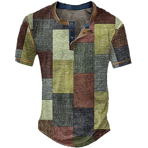 Three Button Retro Plaid Colorblock Short Sleeve Round Neck Loose T-shirt
