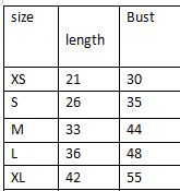 Size;XS-40g, S-52g, M-66g, L-83g, XL-100g