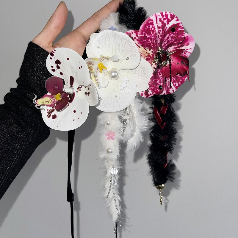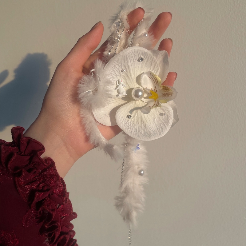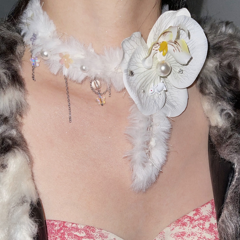 Color classification: white plush phalaenopsis necklace * one, black plush phalaenopsis necklace * One, White purple ribbon phalaenopsis necklace * One