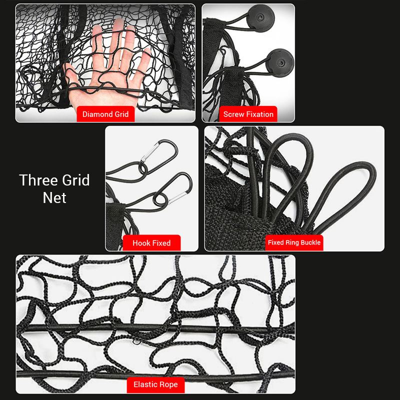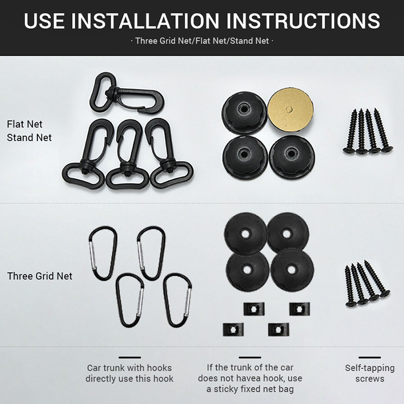 3. Apply to all trunk, no matter what kind of trunk you are, you can install, the middle net is made of nylon material, very strong, this luggage net has elastic
