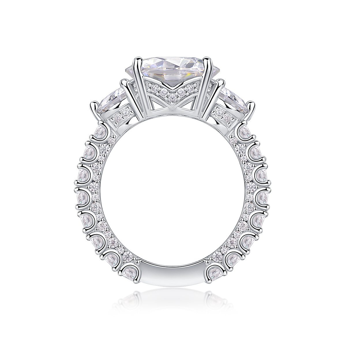 Three-diamond Shining - Set With Top-quality 5-carat Moissanite S925 Silver And Platinum-plated Diamond Wedding Ring. The Ring Can Be Inspected With A Diamond Pen