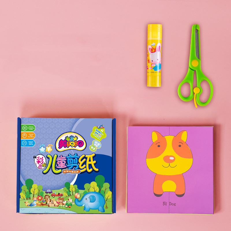 J: [240 sheets] 240 sheets of full-color paper-cut + 2 scissors + solid glue