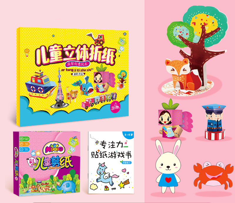 H: [220 sheets] 120 sheets of full-color paper-cutting + 100 sheets of 10-color origami + 1 pair of scissors + solid glue + origami tutorial