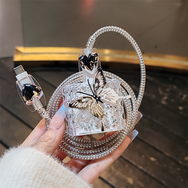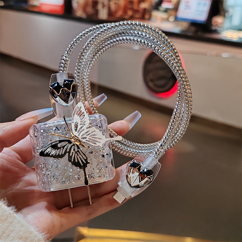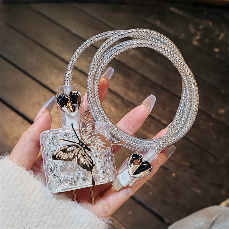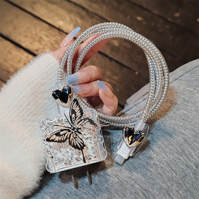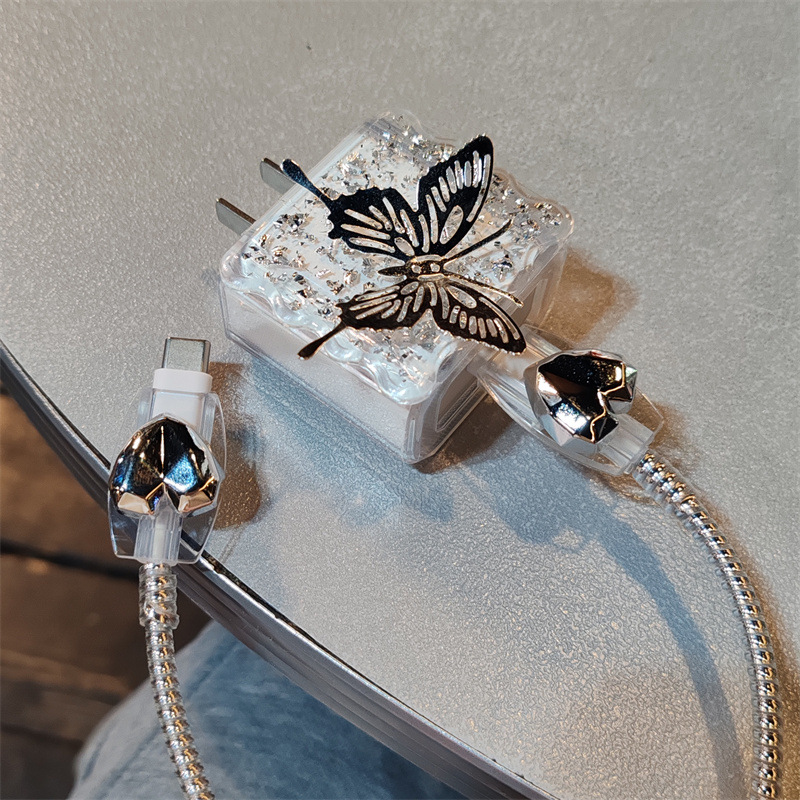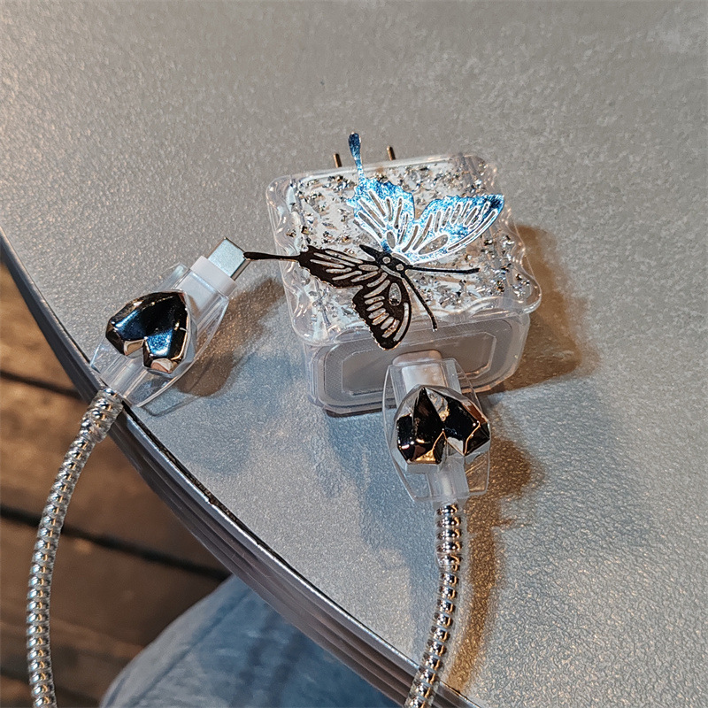 Color: suitable for Apple 20W [silver foil square sleeve 2 shield biting device silver electroplated rope] Butterfly