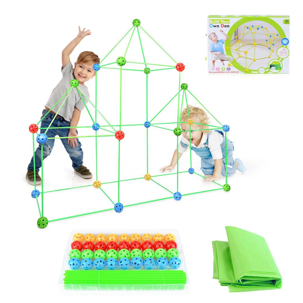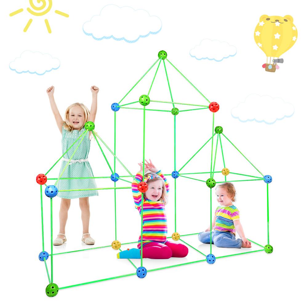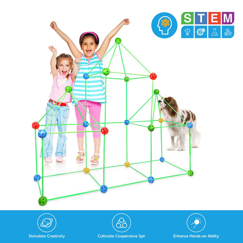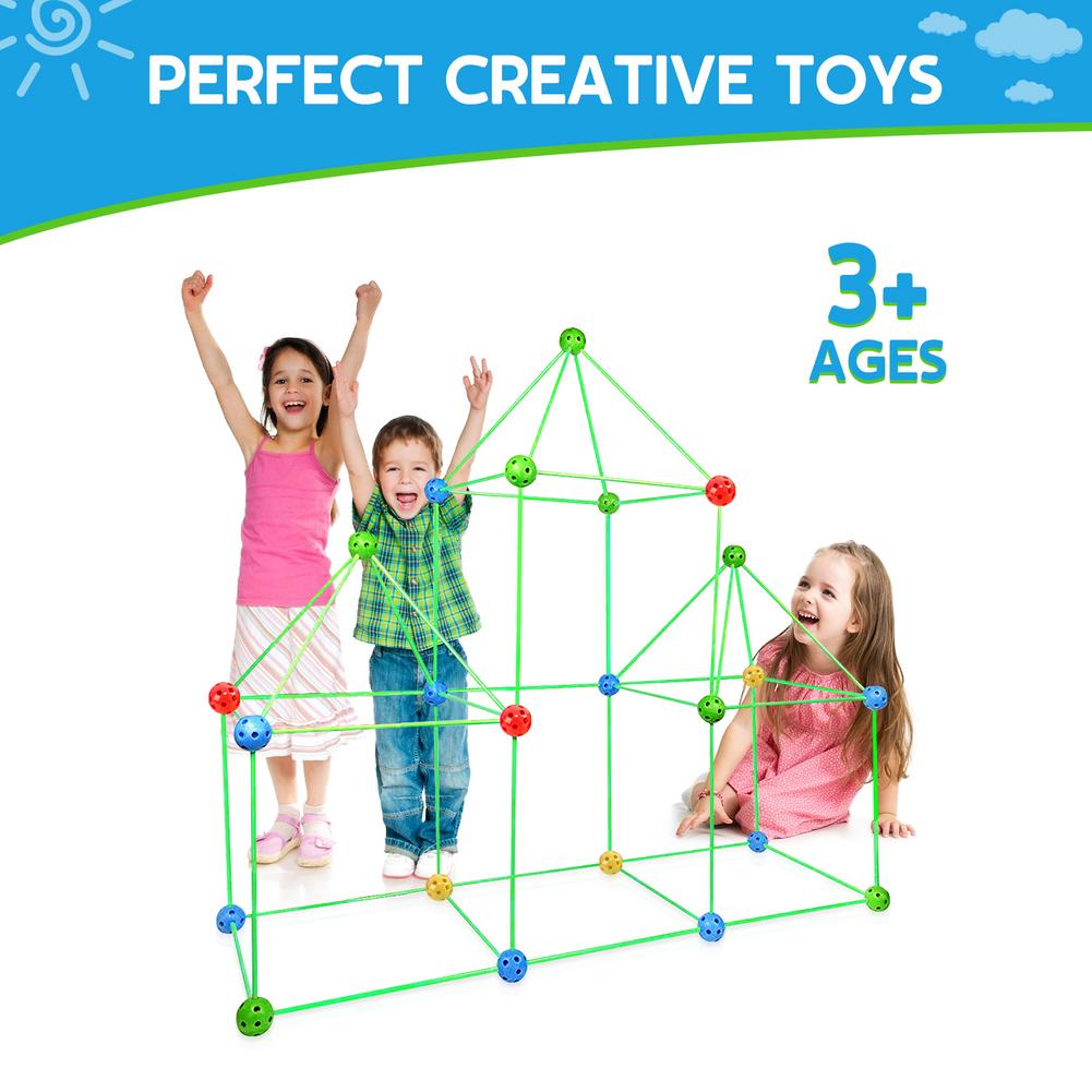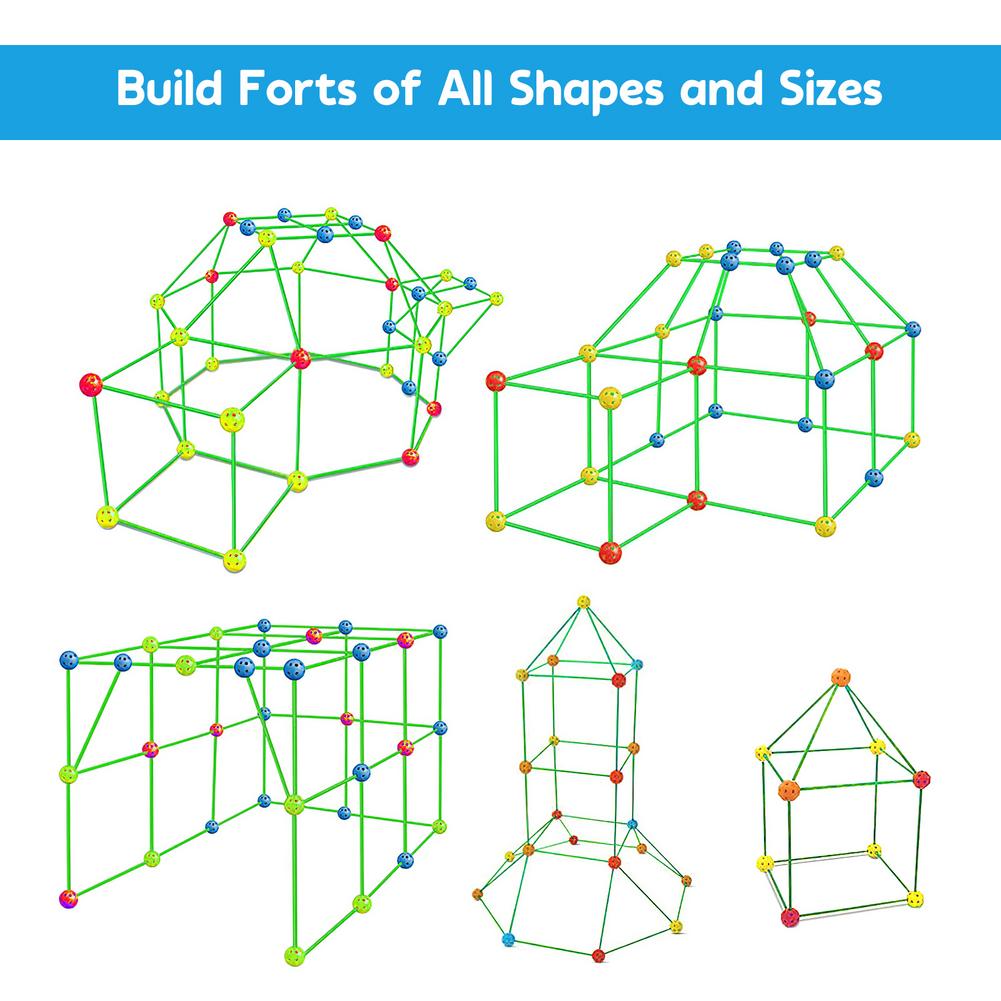 Can build caves, tents, rockets, houses, igloos, princess castles, tunnels, tents, game tents or by adding