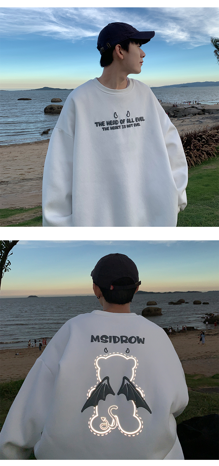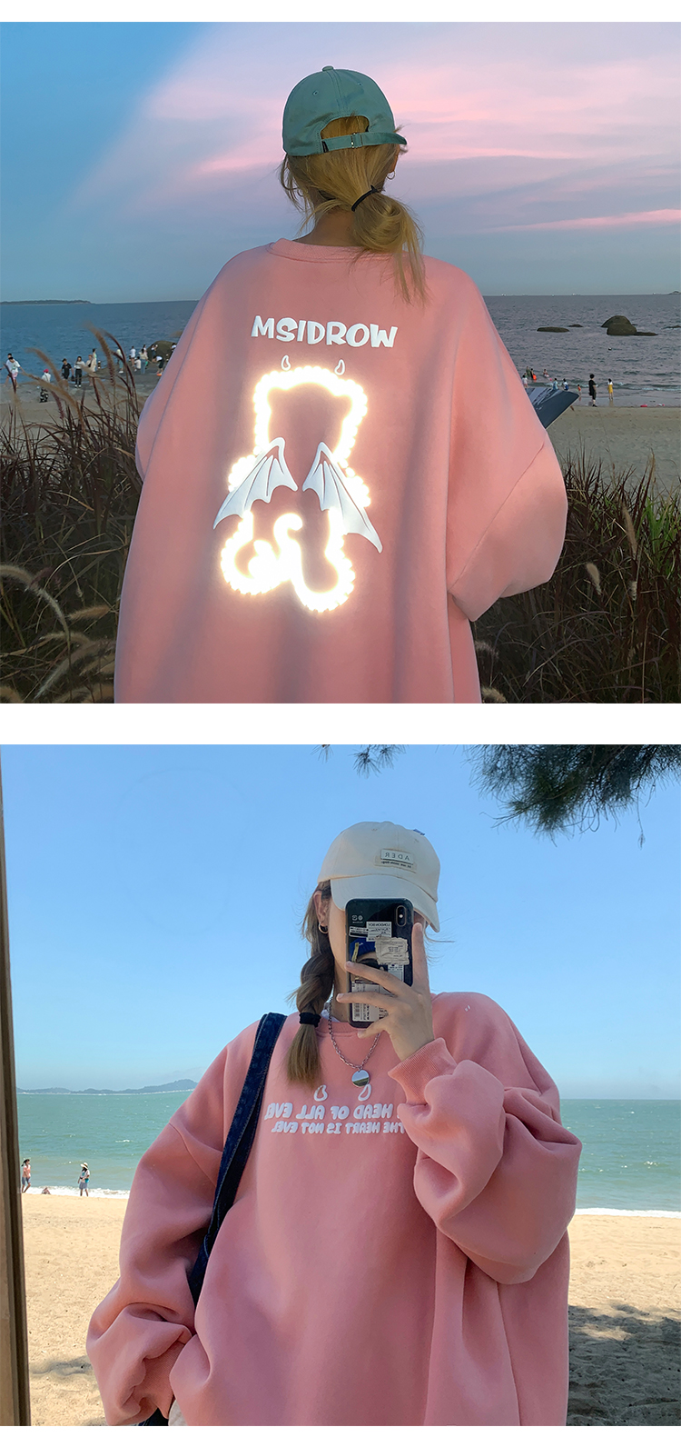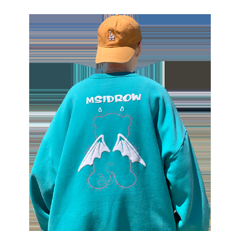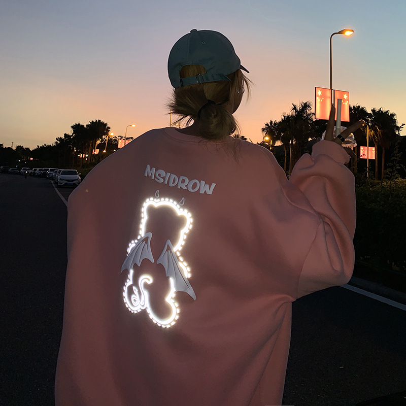 Three-dimensional Letter Bear Reflective Print Loose Plus Size Couple Sweater