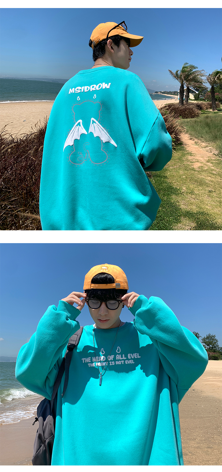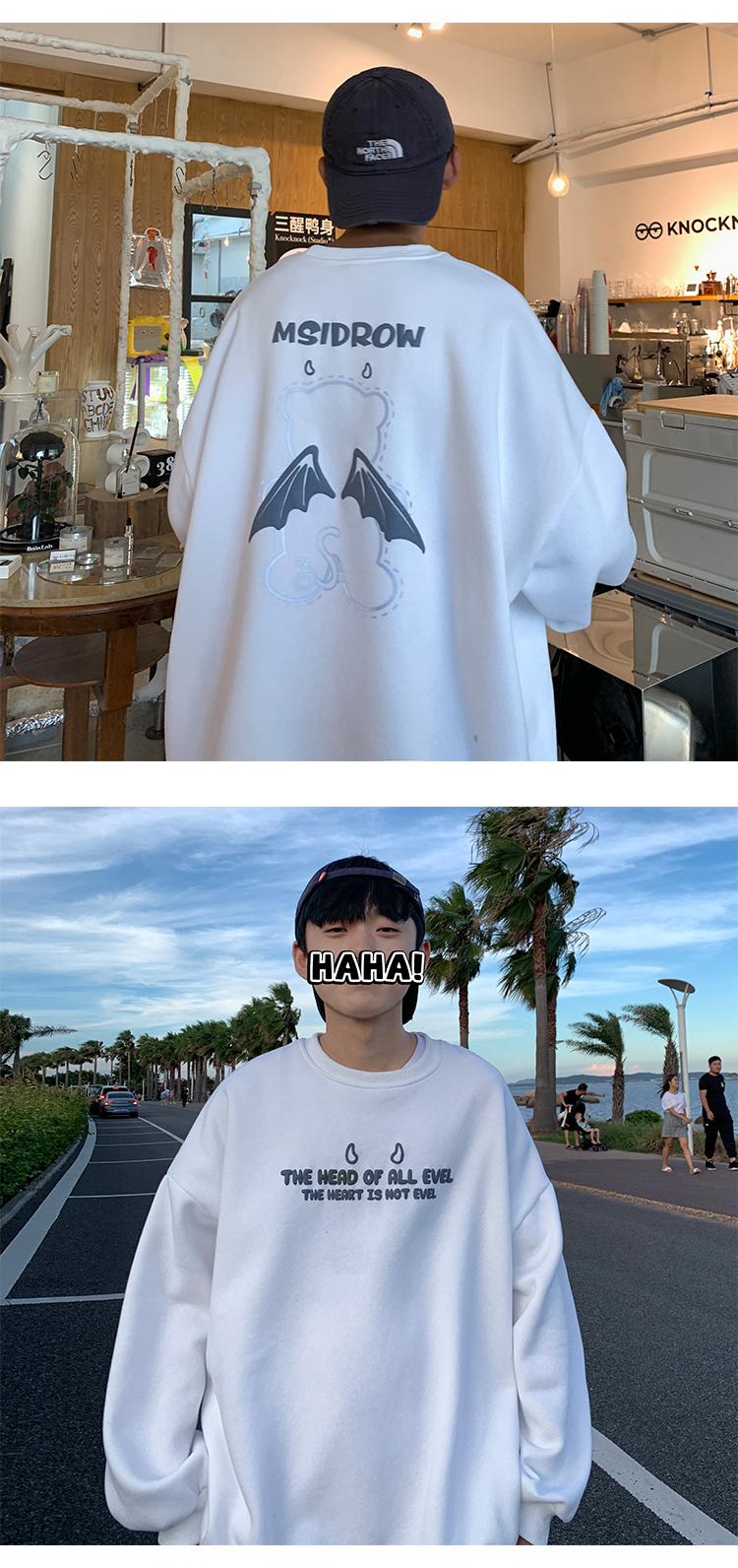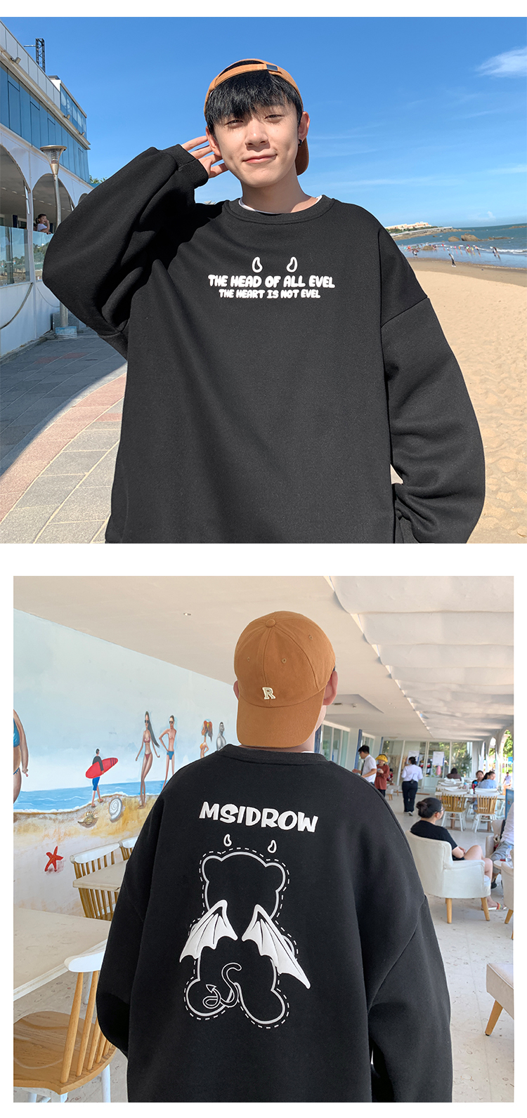 Three-dimensional Letter Bear Reflective Print Loose Plus Size Couple Sweater