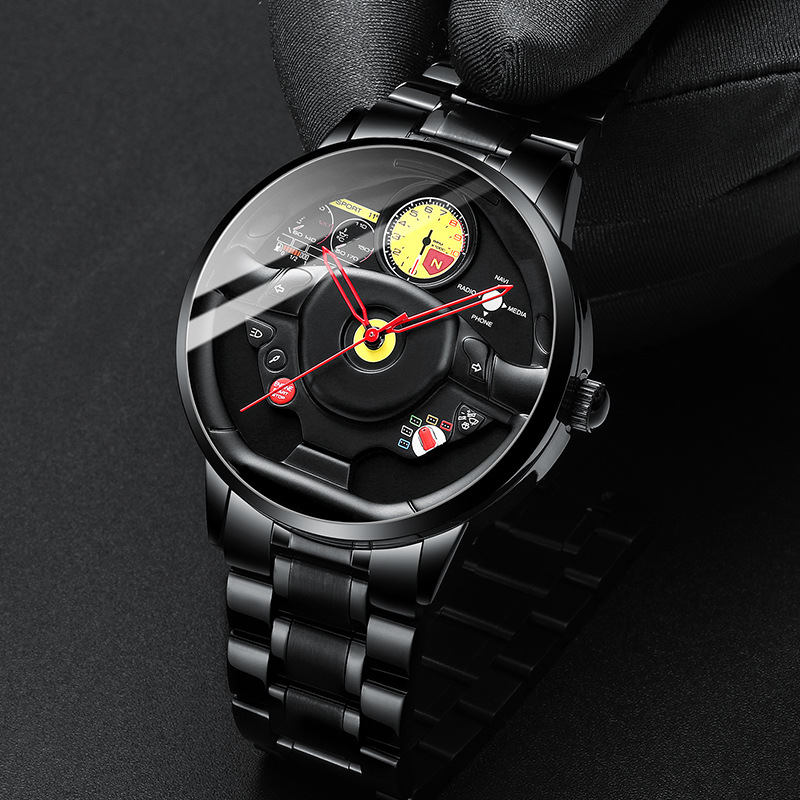 Color: A-all black steel belt steering wheel, B-all black mesh belt steering wheel, C-all black belt steering wheel