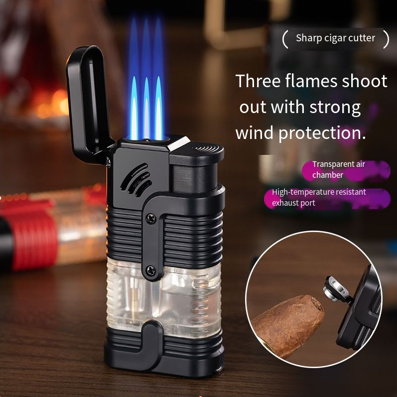Three-nozzle flame: It is more stable and has a more powerful heat output. It is superior to any single-nozzle or double-nozzle flame lighter. Moreover, it has extremely strong wind resistance.