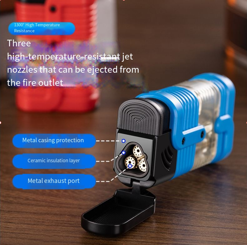 Three-nozzle flame: It is more stable and has a more powerful heat output. It is superior to any single-nozzle or double-nozzle flame lighter. Moreover, it has extremely strong wind resistance.