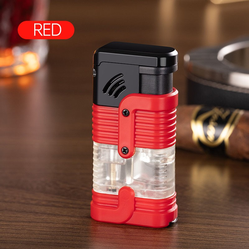 Three Direct-to-cigarette Lighter - Red Three Nozzle Flames Butane Torch Igniter Rechargeable Butane Gas Igniter Windproof And Adjustable 3 Burning Flames Suitable For Cooking, Camping, Cigar Li