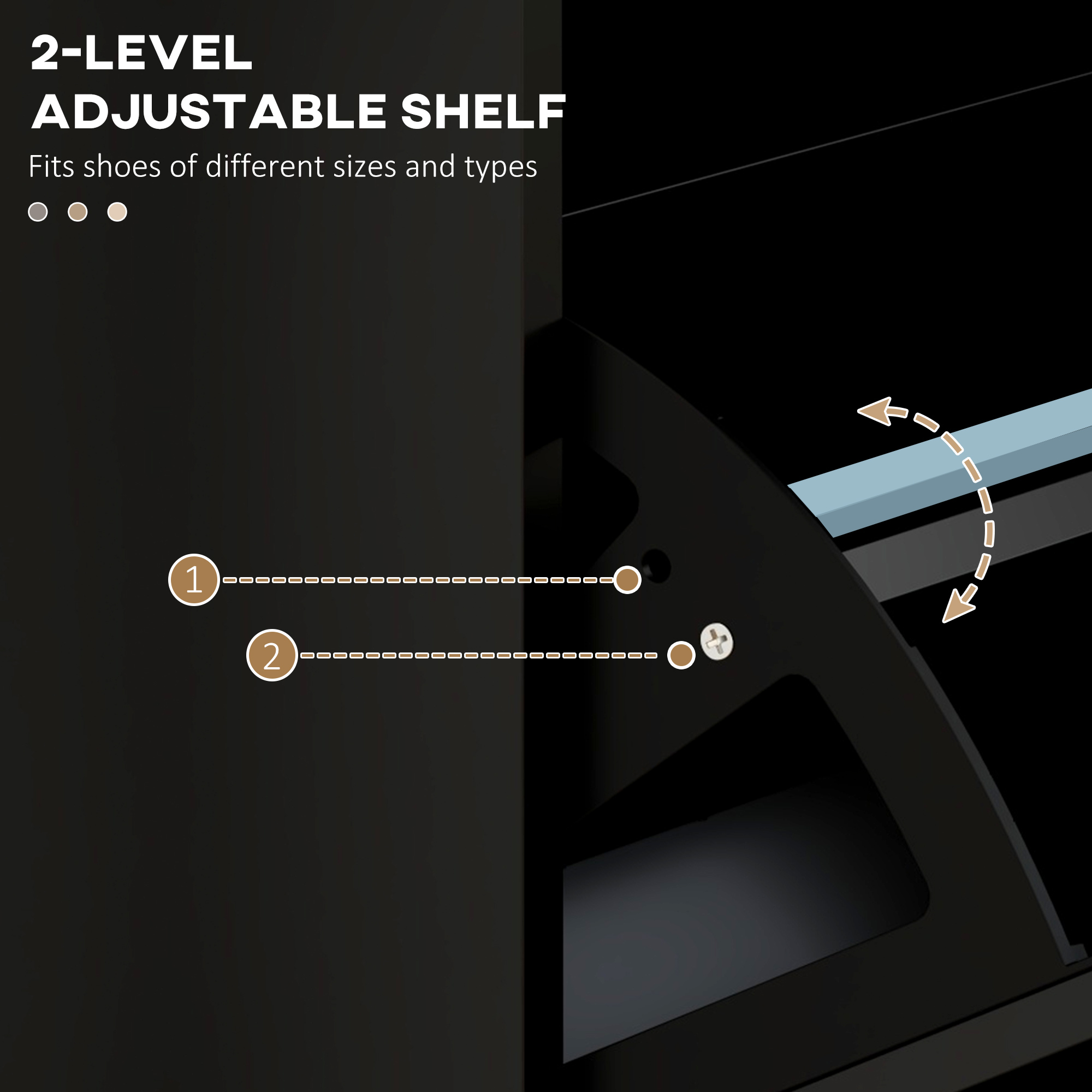 For even the smallest of spaces, welcome in this narrow shoe cabinet. With three flip drawers, it offers space for up to 15 shoe pairs. Each drawer comes with a two-level adjustable shelf to cater for different shoe sizes and types. Made from MDF this is a sturdy piece suitable for everyday use; this minimalistic black slimline shoe storage cabinet comes with anti-tipping straps to securely attach to a wall.