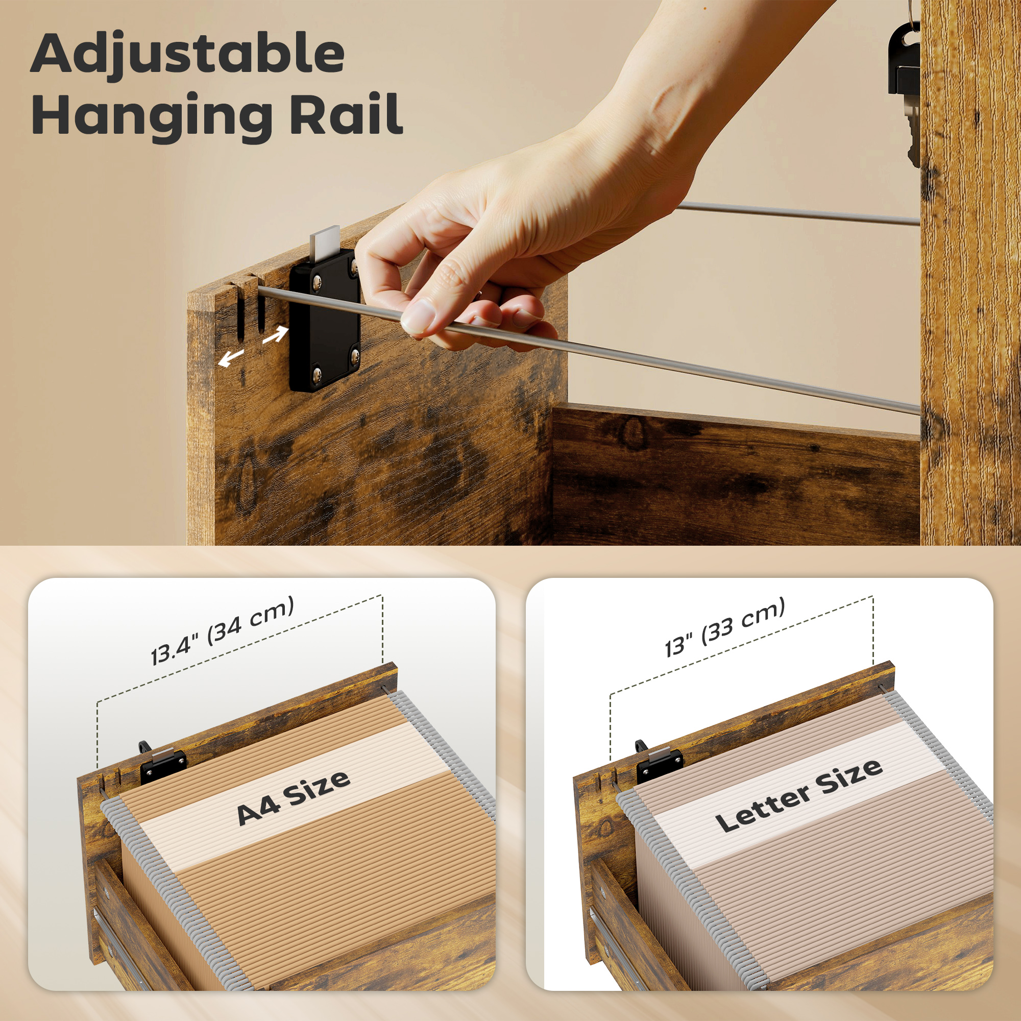 • File Drawer Inner Size: 33W x 33D x 18.5/24H cm (side panel/hanging height)