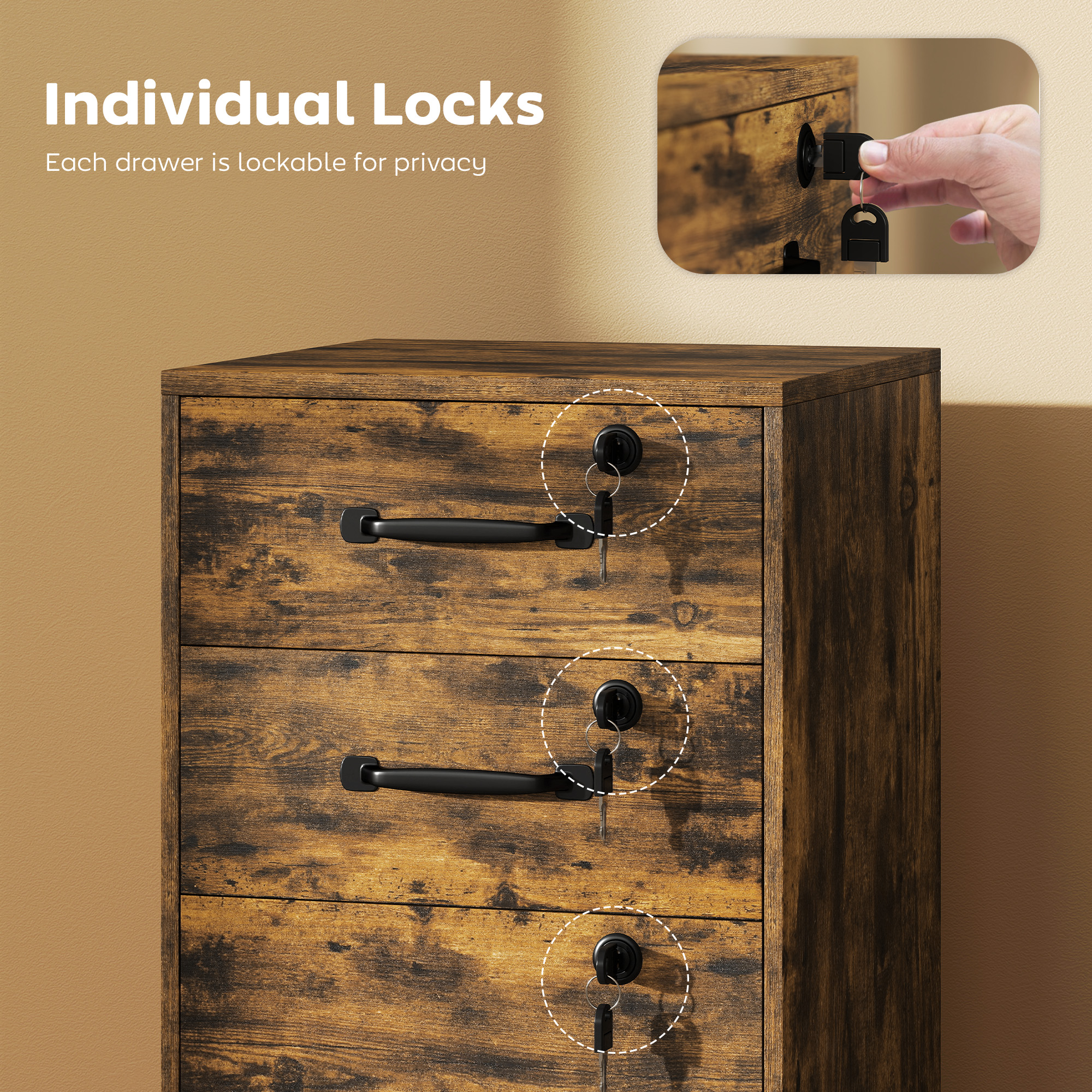 Three Drawer Wood-Effect Filing Cabinet - Rustic Brown