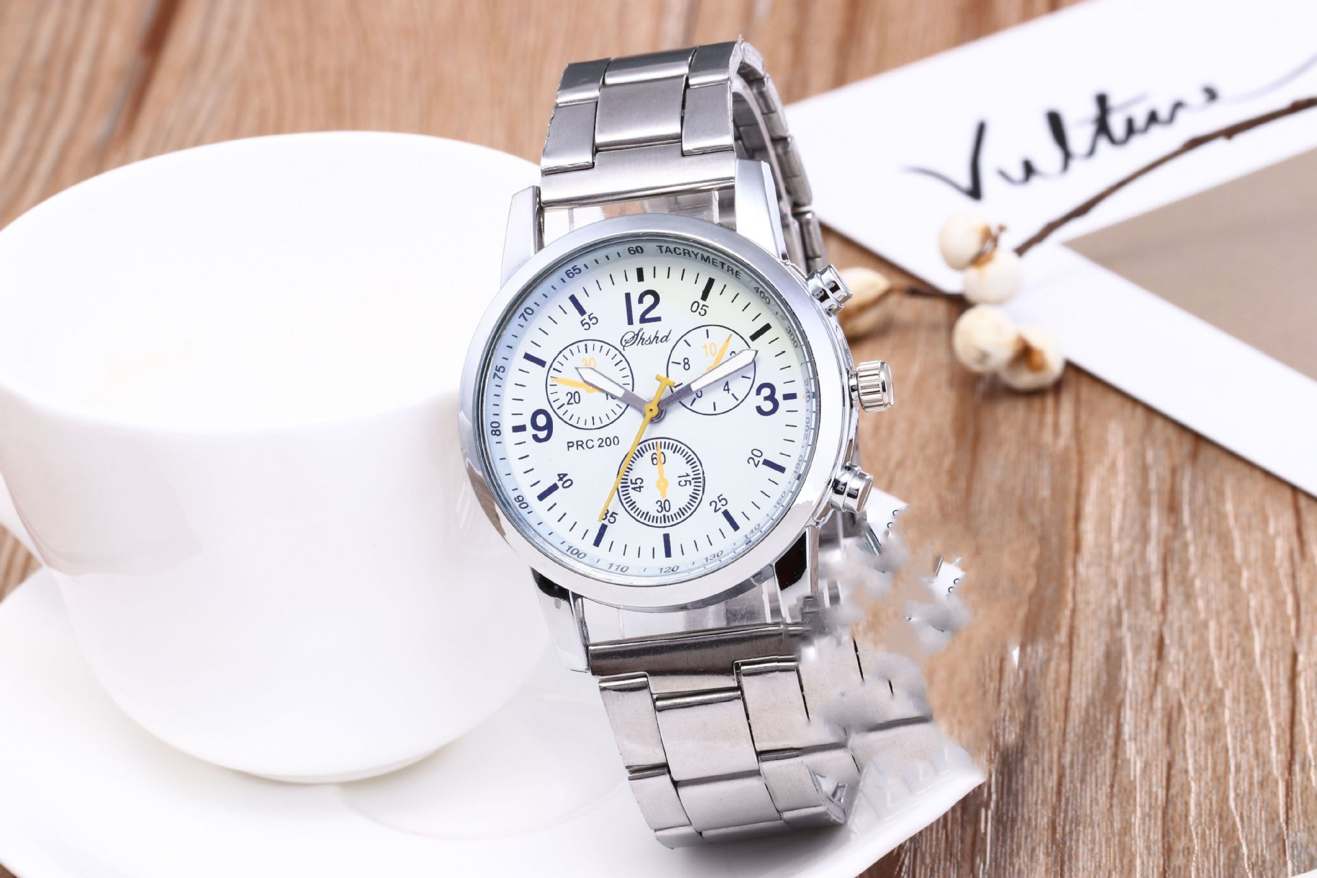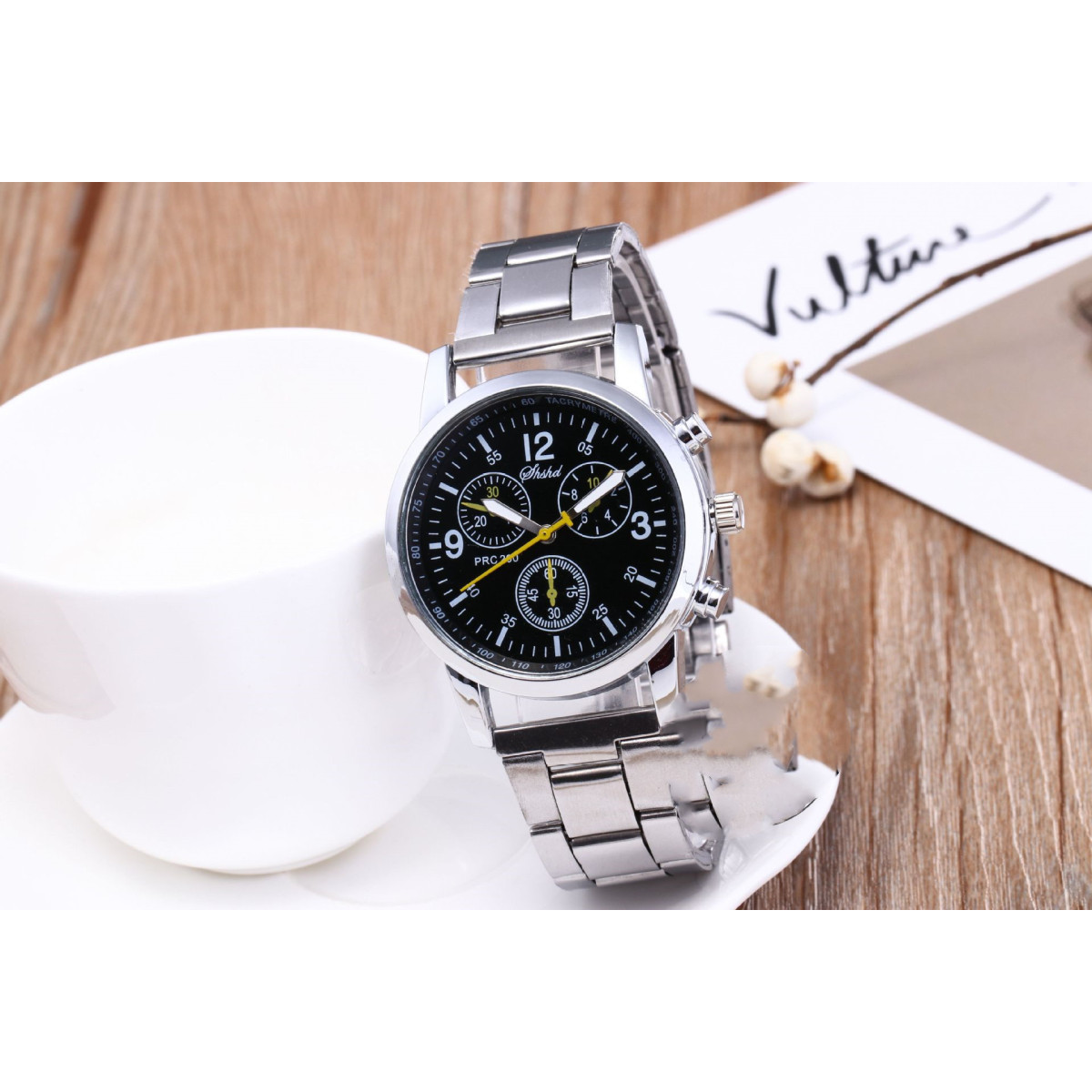 Three Eyes Six Needles Steel Band Watch Men's Watch Gift Quartz Hand