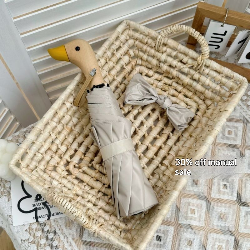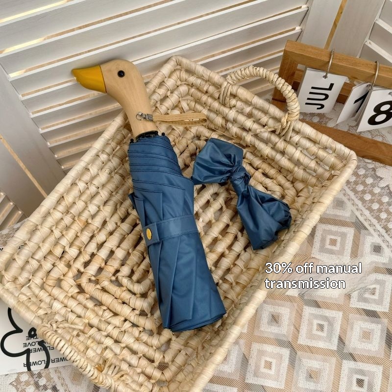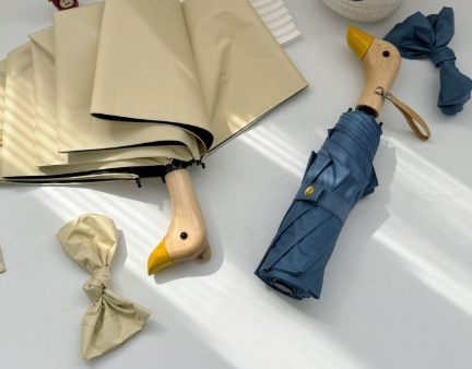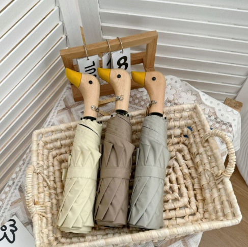 Colors: 3-Fold Manual Umbrella in Cream Yellow with Duck-Head Handle, 3-Fold Manual Umbrella in Paulownia Beige with Duck-Head Handle, 3-Fold Manual Umbrella in Misty Blue with Duck-Head Handle, 3-Fold Manual Umbrella in Morning Mist Green with Duck-Head Handle, 3-Fold Manual Umbrella in Obsidian Black with Duck-Head Handle, 3-Fold Manual Umbrella in Camel-Blue with Duck-Head Handle, 3-Fold Manual Umbrella in Taro Purple with Duck-Head Handle, 3-Fold Manual Umbrella in Cherry Blossom Pink with Duck-Head Handle