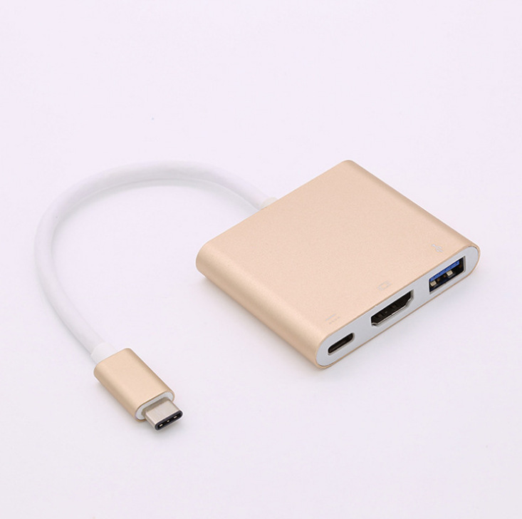 Metal USB3.1 Type-C to HDMI 3-in-1 multi-function HD transfer cable video output with PD charging