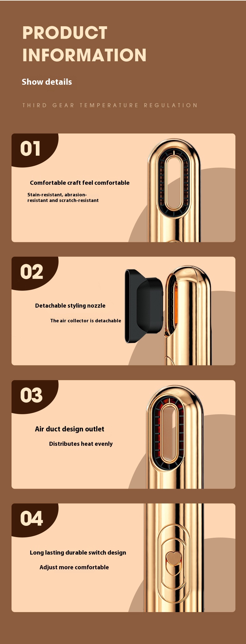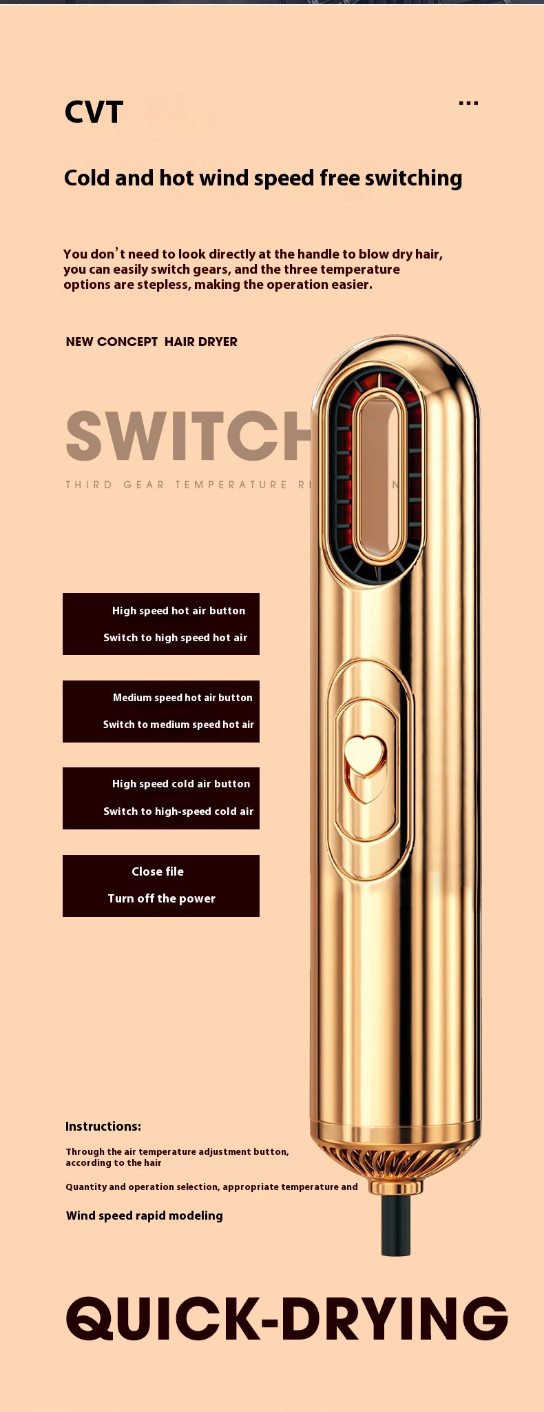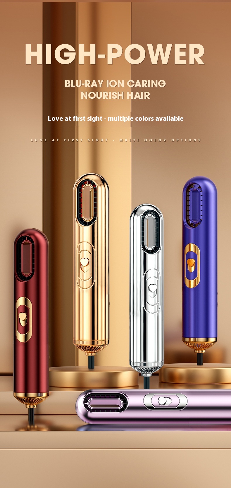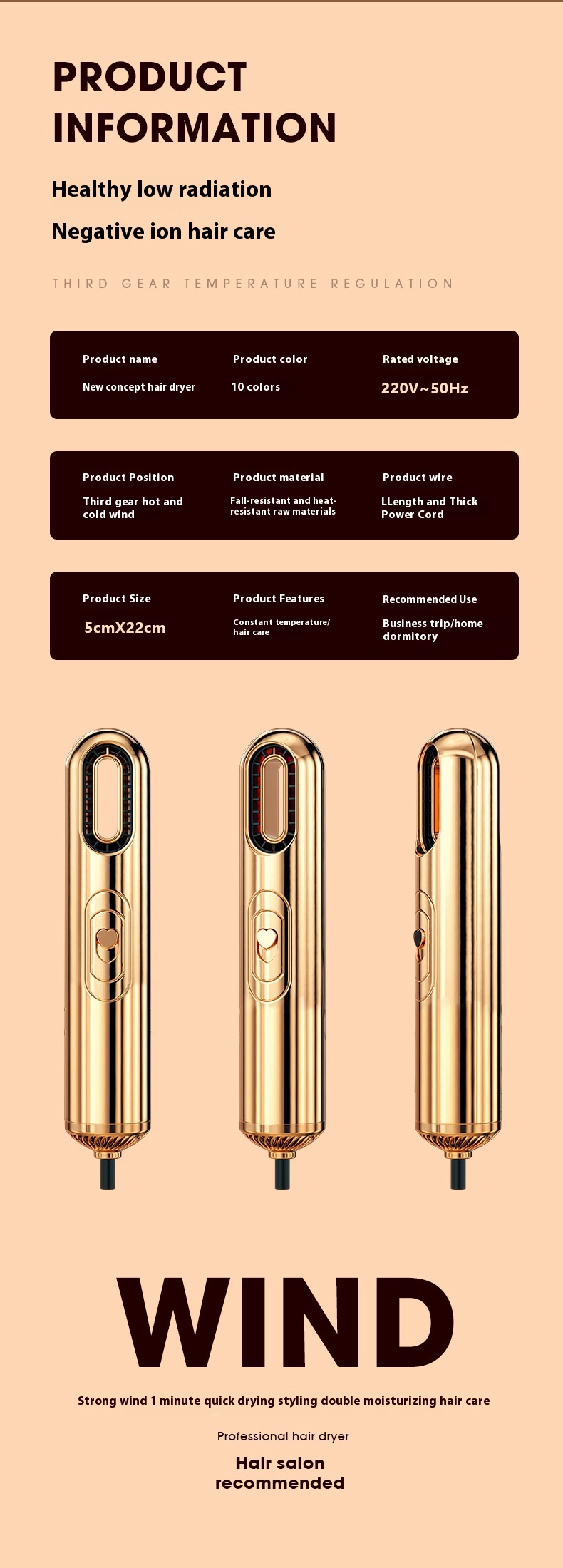 Additional functions: blue light, cold air, water ion, thermostatic hair care, hot and cold alternating wind