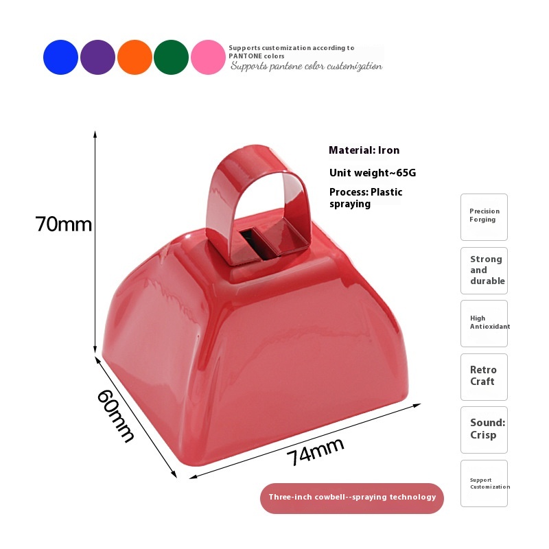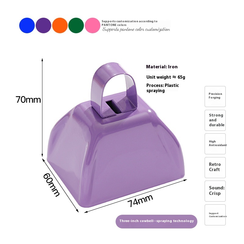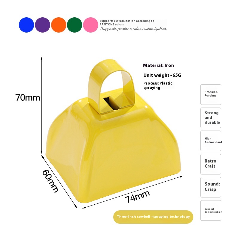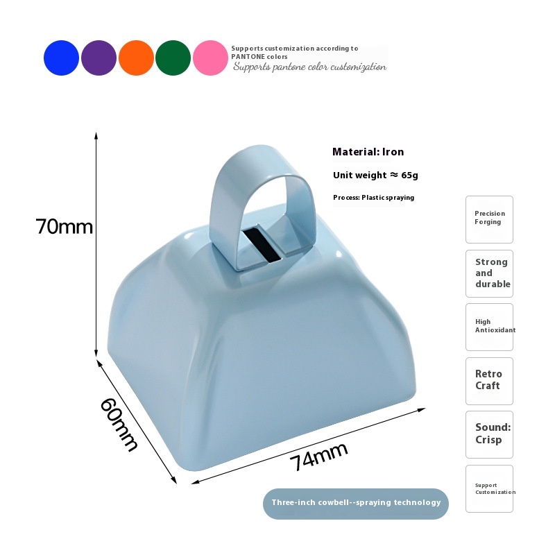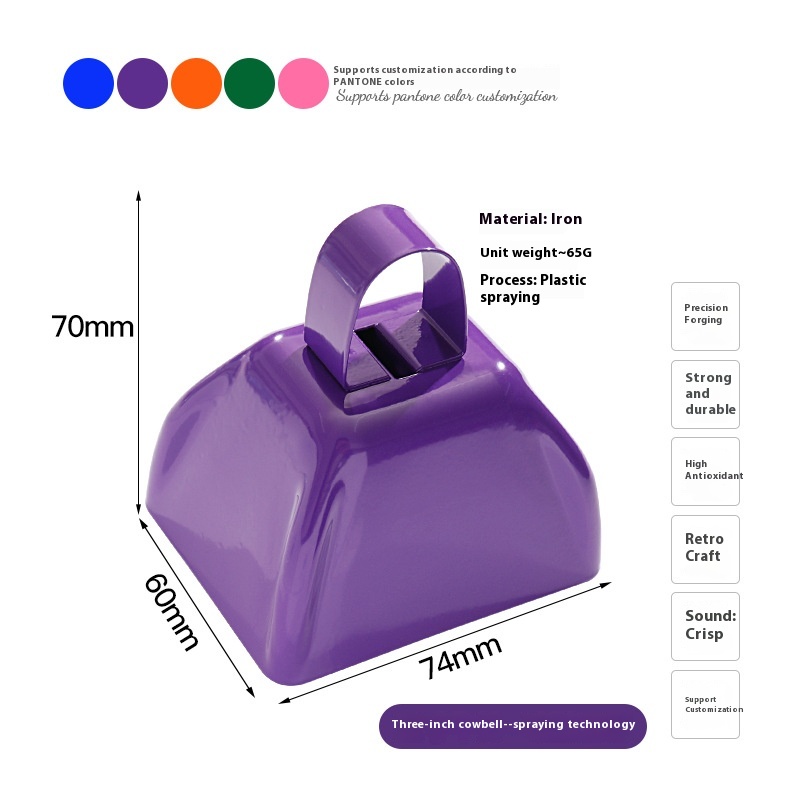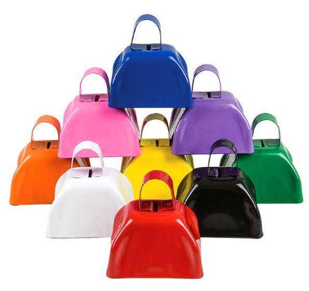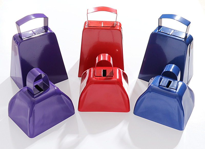 Color: yellow (3-inch cowbell), blue (3-inch cowbell), Red (3-inch cowbell), Black (3-inch cowbell), White (3-inch cowbell), pink (3-inch cowbell), Purple (3-inch cowbell), matte light blue (3-inch cowbell), Orange (3-inch cowbell), Green (3-inch cowbell), dark purple (3-inch cowbell), Brown (3-inch cowbell), Silver Gray (3-inch cowbell), Gray (3-inch cowbell), Red 1 [9-inch hand cowbell], one blue [9-inch hand-cranking cowbell]], one black [9-inch hand-cranking cowbell], one white [9-inch hand-cranking cowbell], brown I [9-inch hand cowbell] and an orange [9-inch hand cowbell]], Red (4-inch cowbell), blue (4-inch cowbell), Purple (4-inch cowbell), yellow (4-inch cowbell), White (4-inch cowbell)