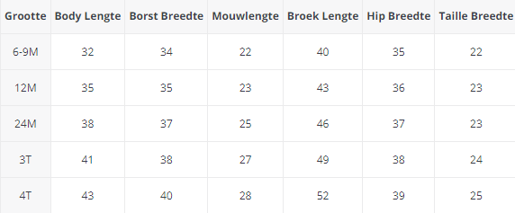 Size Information: