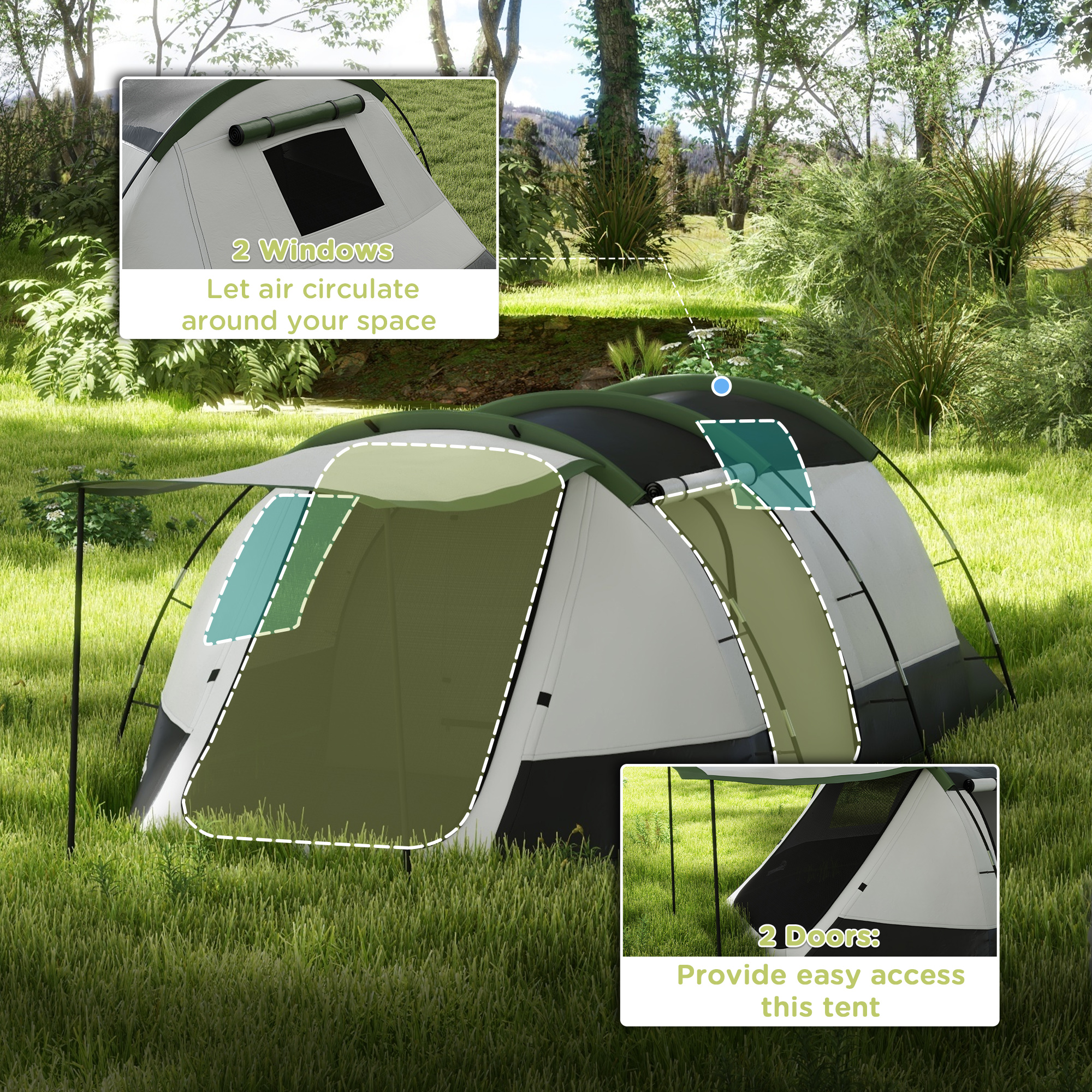 Share the fun of your camping with company. This two-room family tent comes with a bedroom and chill-out space: room for up to three people. Fibreglass poles mean a tough core, with the water-resistant shell protecting up to 2,000mm of rainwater. Doors to enter each space easily. 18x ground stakes, 8x guy ropes and carry bag included.