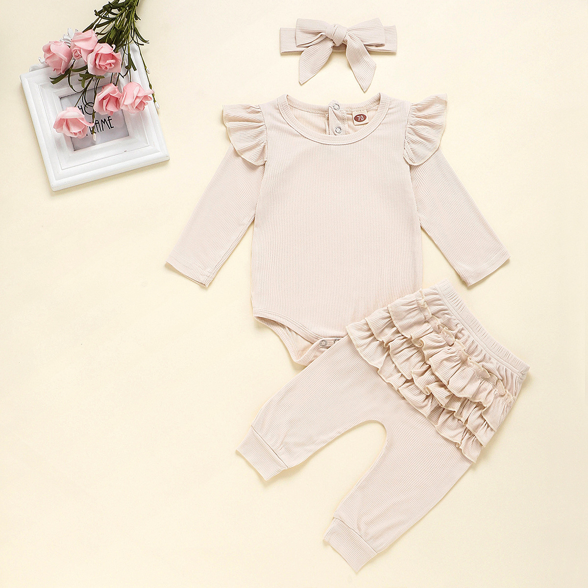 Three-piece lace trousers headband