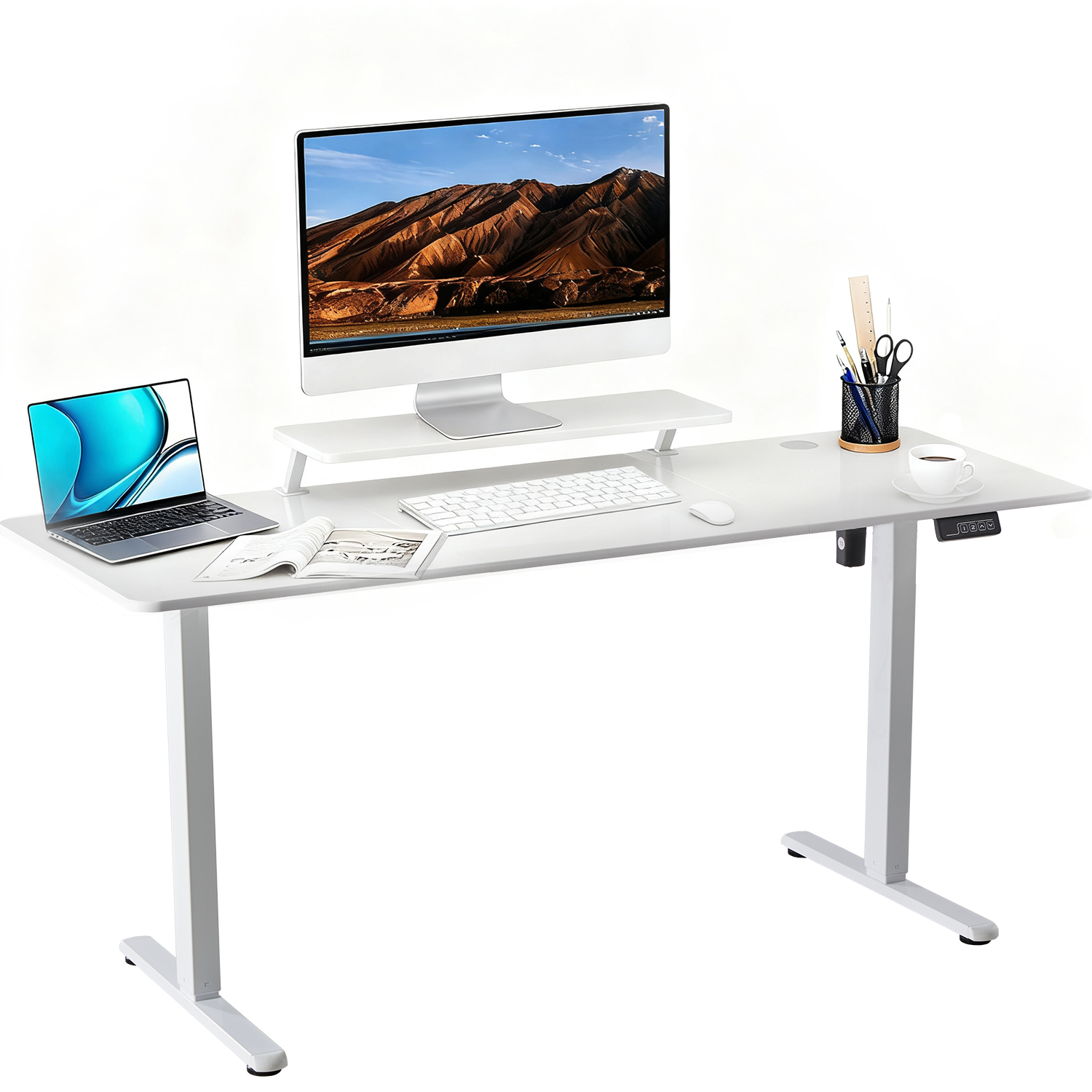 | 3-Piece Height Adjustable Desk with Shelf - 6324 White + White Legs | ELT-C3P6324-WT | 77 | 57.5 | 18 | 26.5 | 1955.8 | 1460.5 | 457.2 | 26500 |
