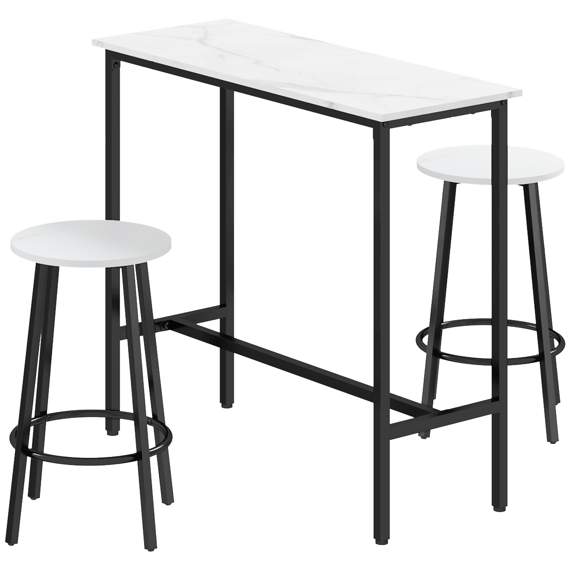 Three-Piece Marble-Effect Bar Table Set - White/Black