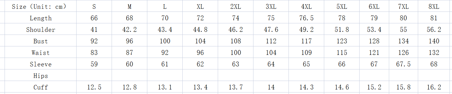 Size: S/165, M/170, L/175, XL/180, 2XL/185, 3XL/190, 4XL/195