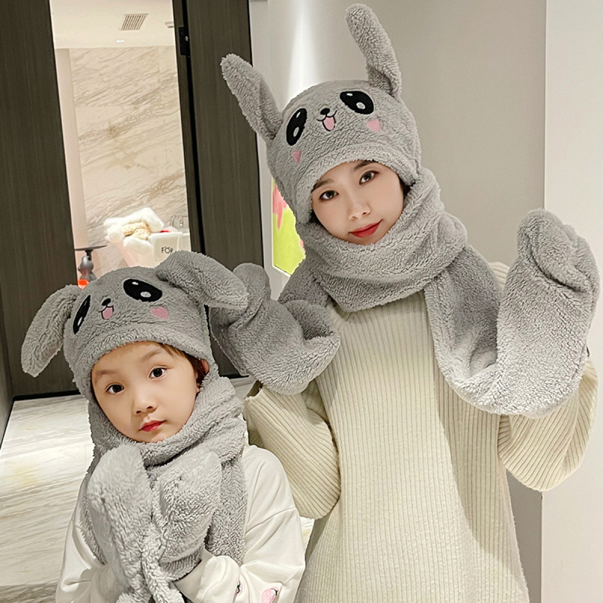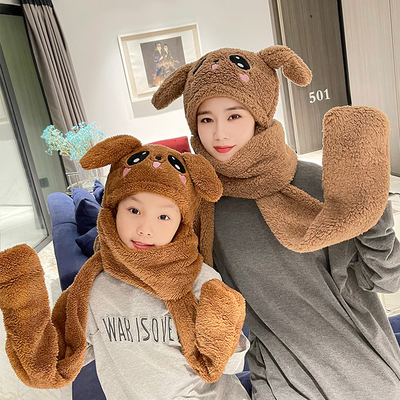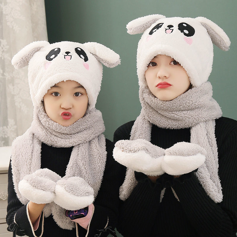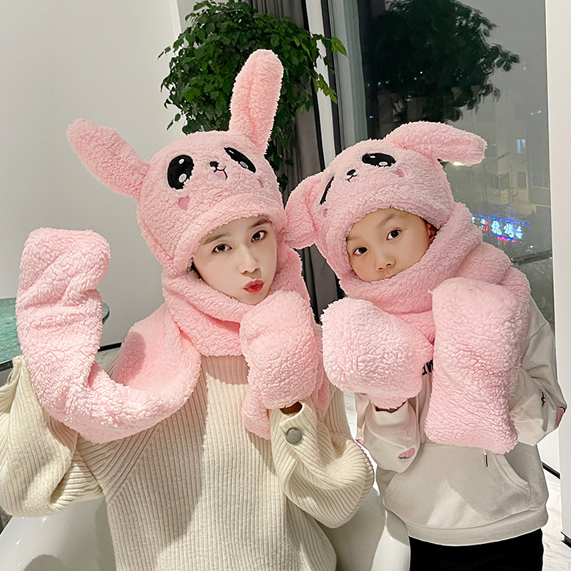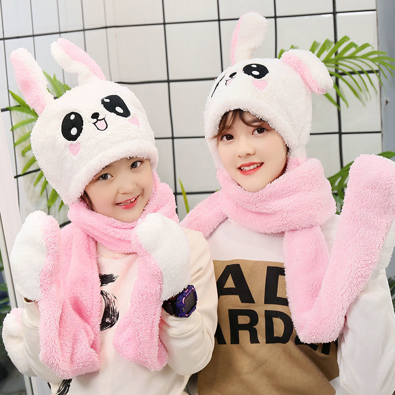Three-piece Set Of Rabbit Ears Warm Plush Moving Hat Scarf Gloves