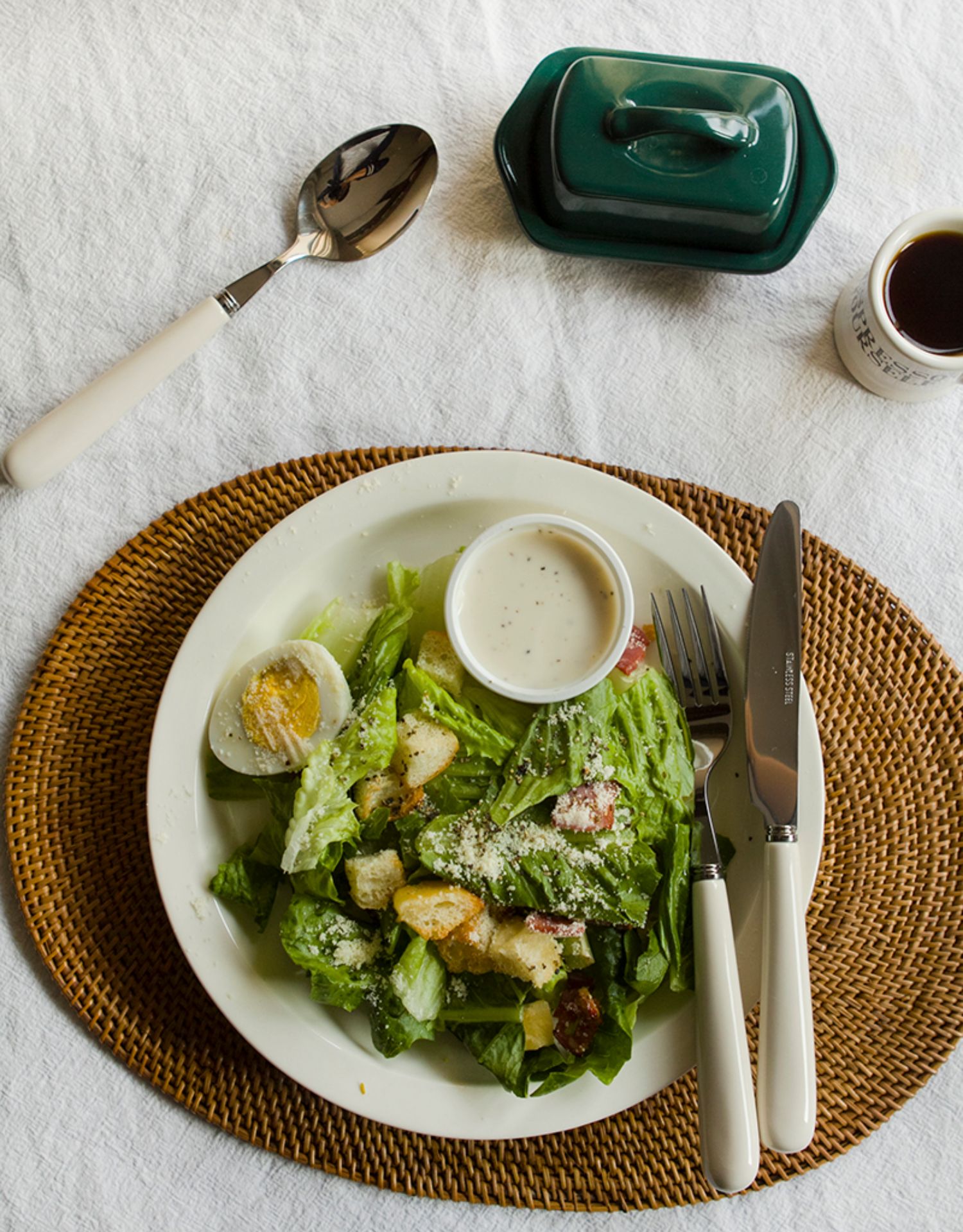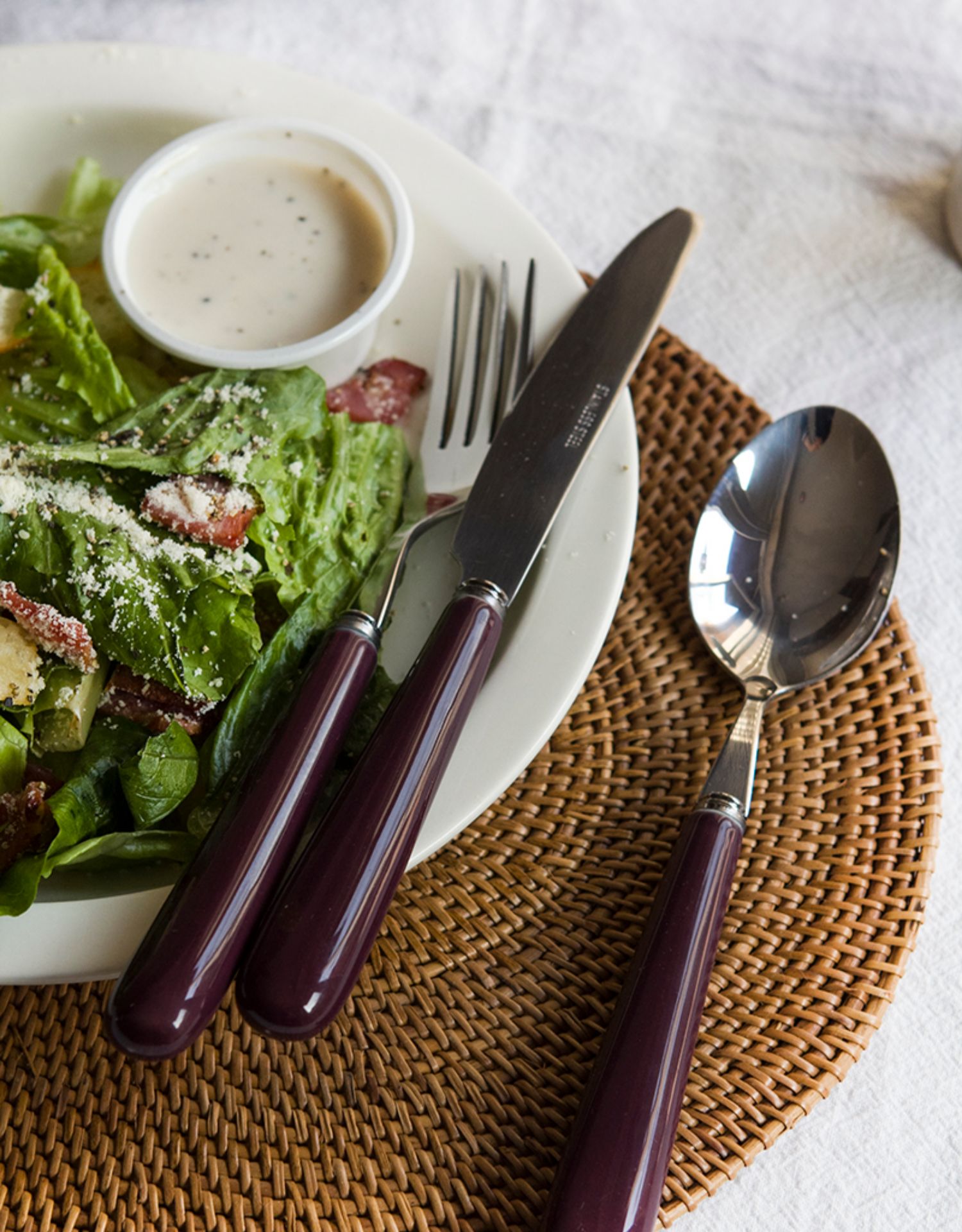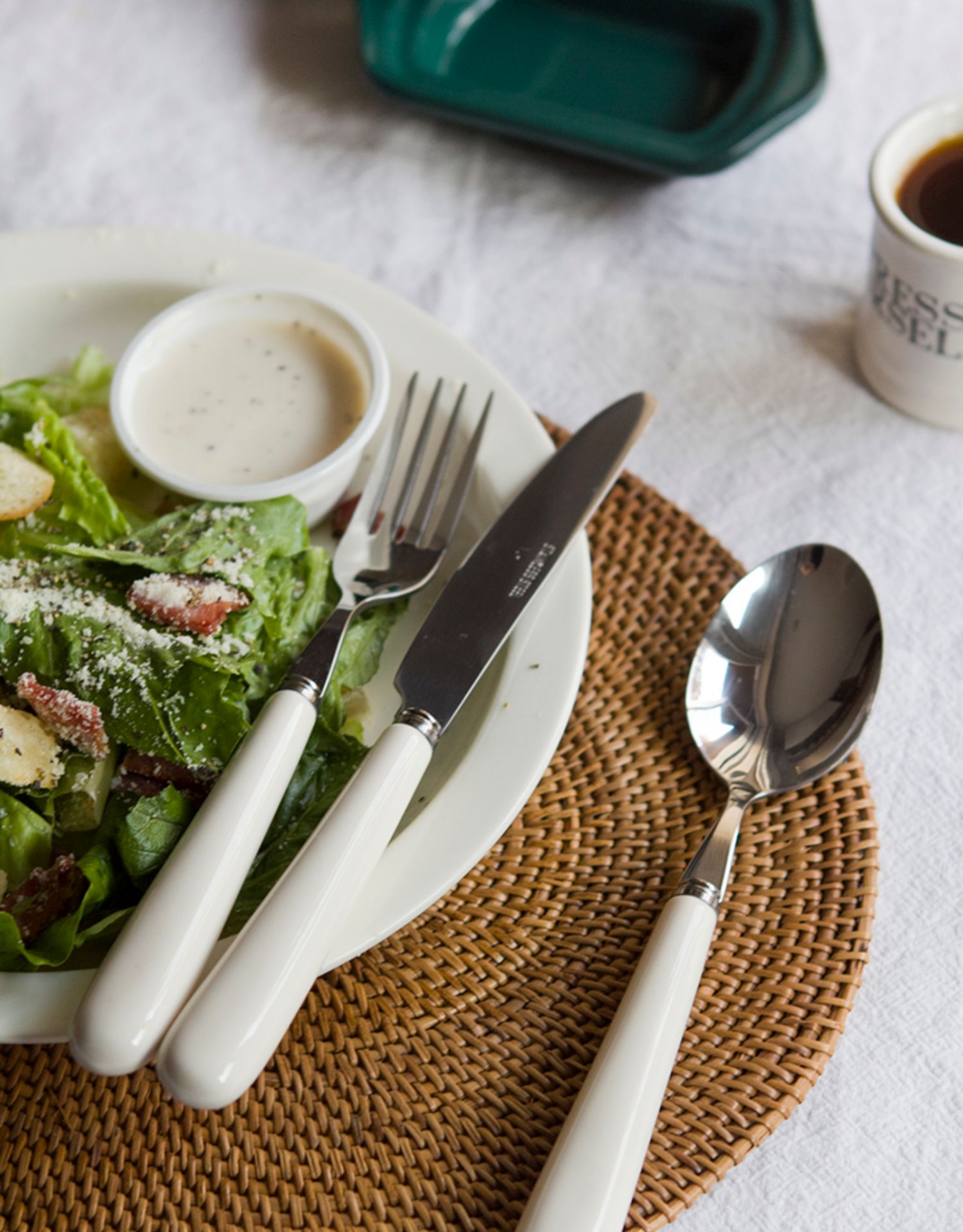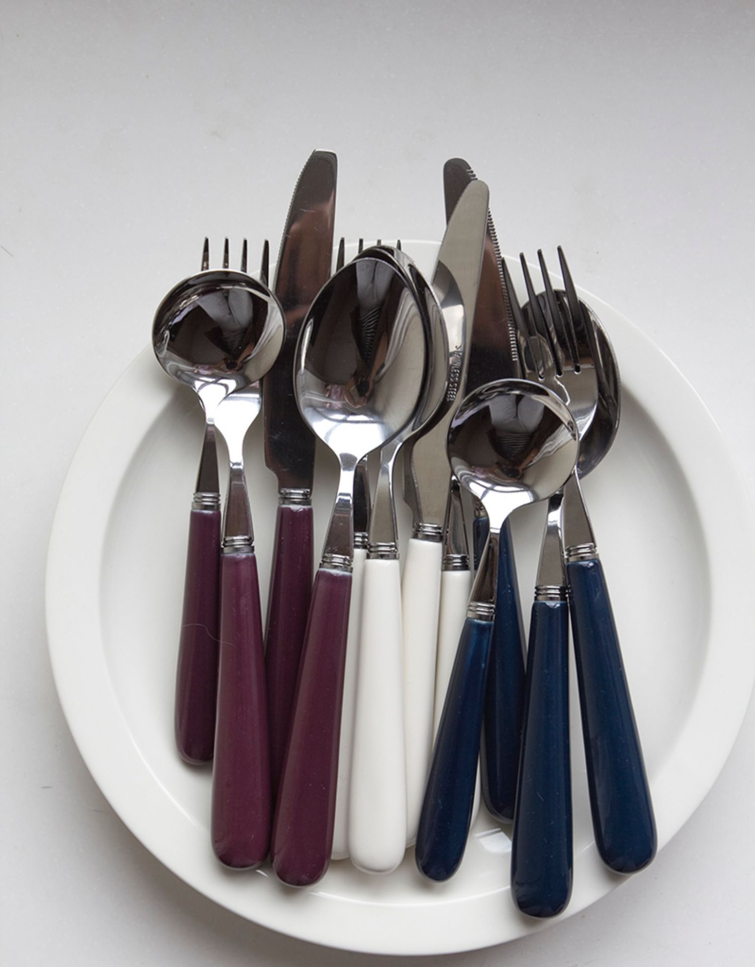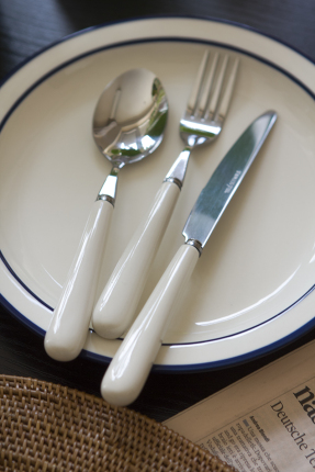 A: Three-piece set of ivory white main meal knife, fork and spoon