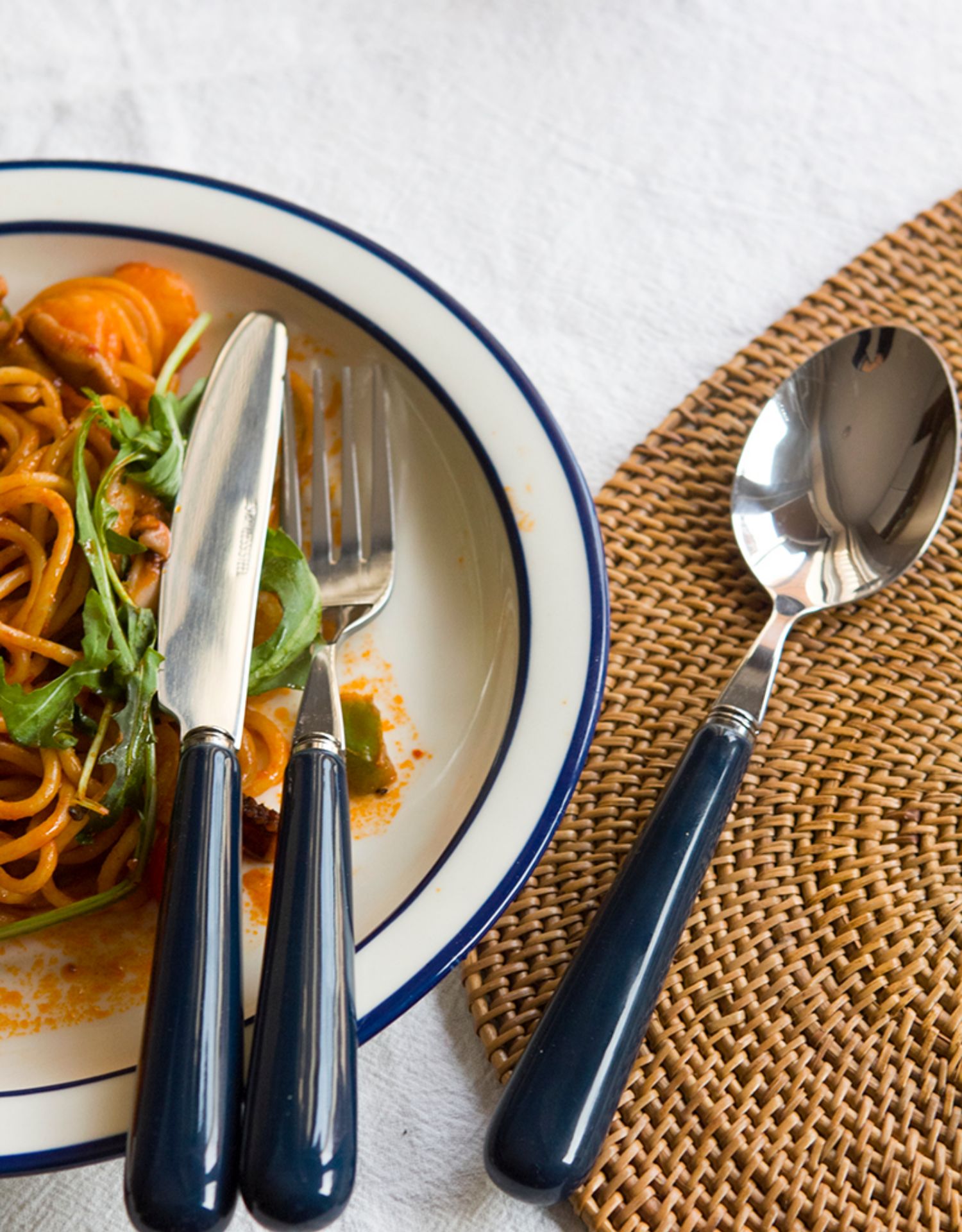 D: Dark blue three-piece main meal set