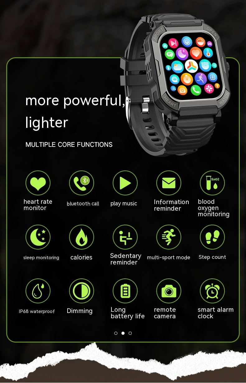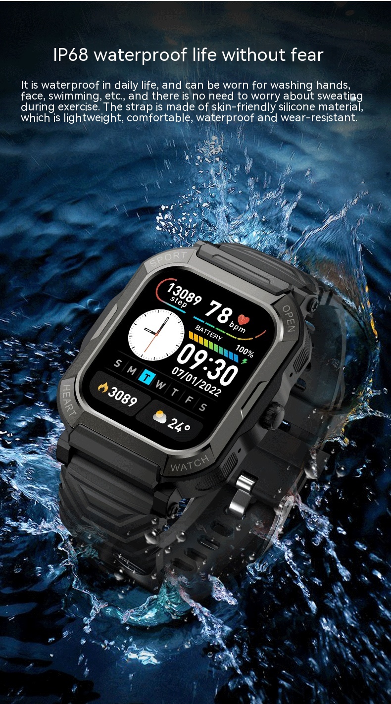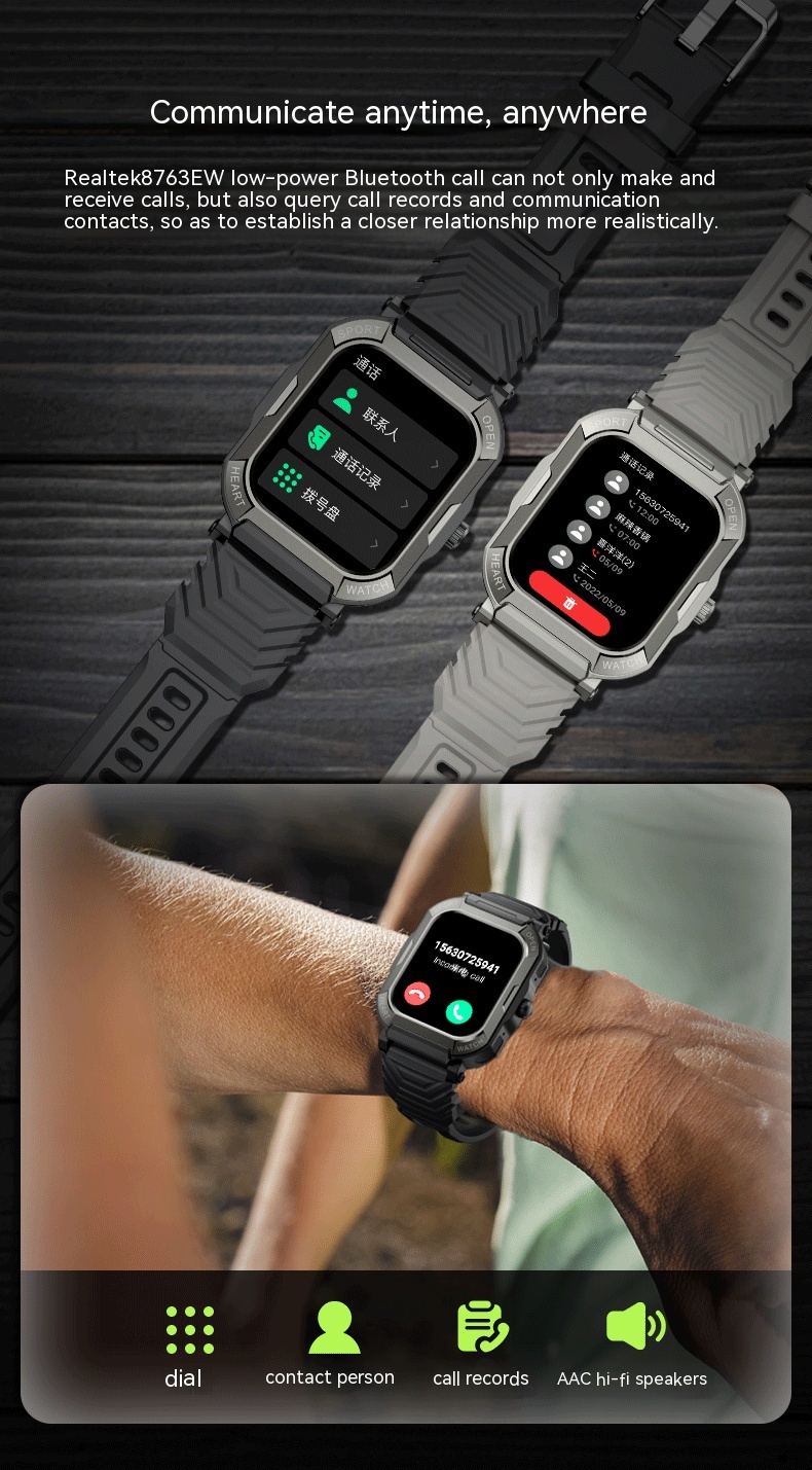 Functions: social entertainment, Bluetooth calling, smart reminder, remote control selfie, sleep monitoring, blood oxygen detection
