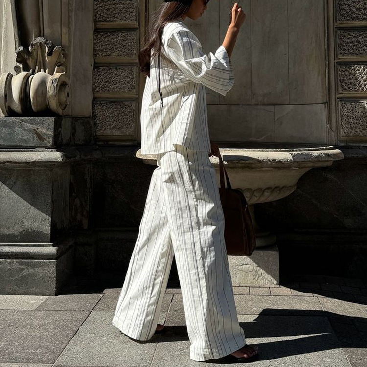 Three-quarter Sleeve Cardigan Top And Loose Wide-leg Pants Two-piece Set