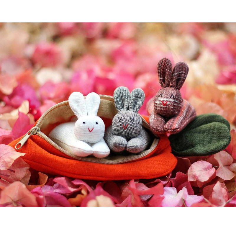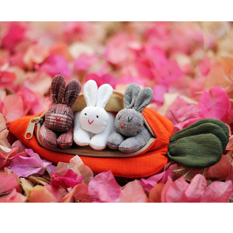Color: three rabbits, white rabbit, red rabbit, carrot